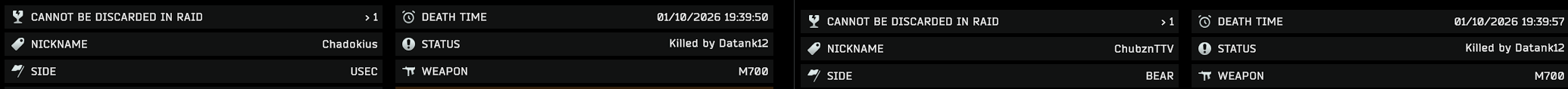 >>553270832>but if that popup at the bottom is something you actually see while playing, isnt that cheating?Anon I just take a screenshot at the end of the raid and add it to the clip... I literally posted the kill list from that raid here >>553262116>>553271021That's right, I mostly add it for the distance to target, but sometimes a webm may be too blurry or it may not be obvious that I got the kill so I just put them on every kill if possible.
