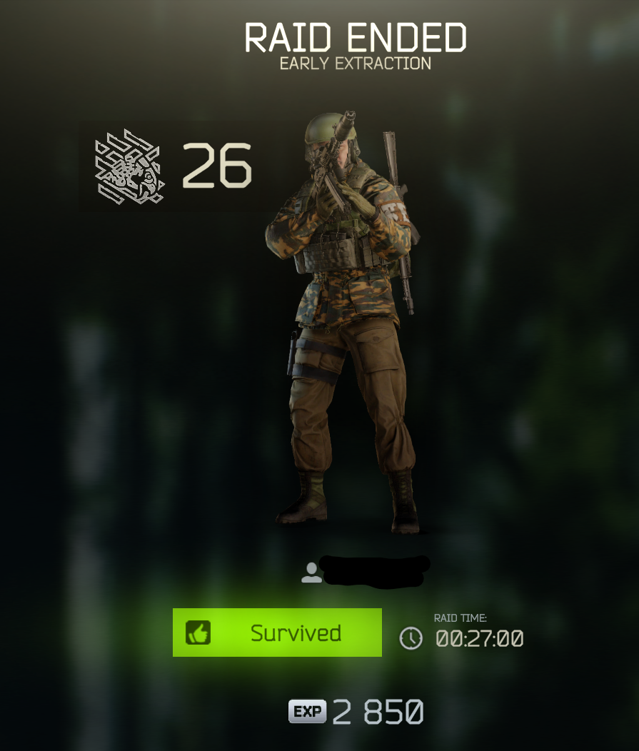 I have ascended beyond gear fear into time fearI would happily take a 2 mil loadout but I don't load into raids at all because I know I'll just waste 20+ minutes running through the jungle just to be doinked out of nowhere by [insert any demographic here] before getting a single task done