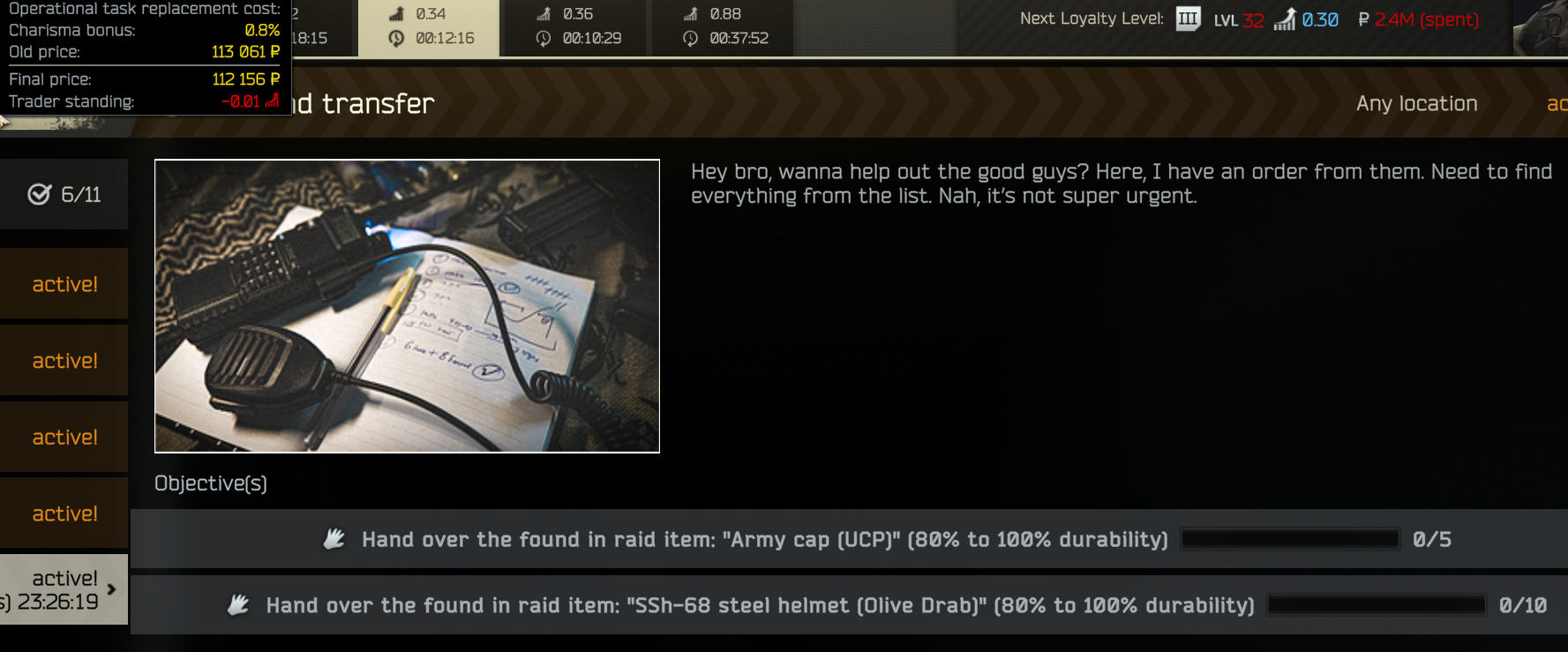 >>553424638I don't want to get a kappa though and you'd have to be sick in the head to want to keep repeating tarkov quests over and over