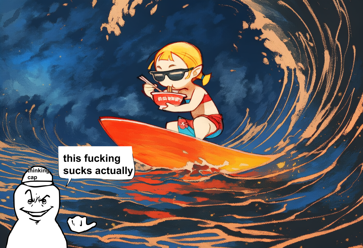 >>553400727I feel you. Plenty of things that I recommend just straight-up don't work outside of a particular prompt I'm using. So it wastes someone else's time. But I don't have time to test every case thoroughly.>>553400890I figured someone might go there with it.