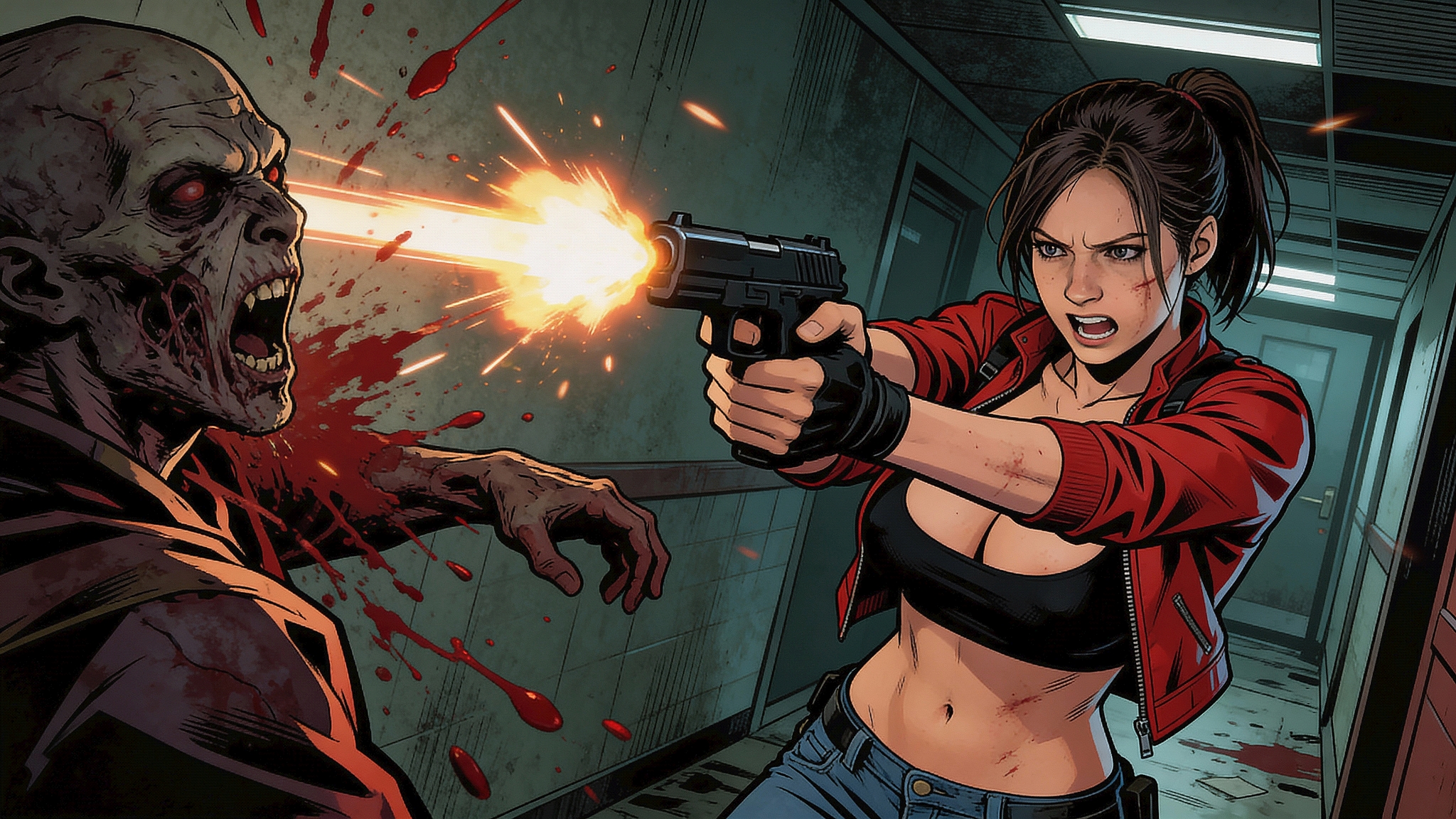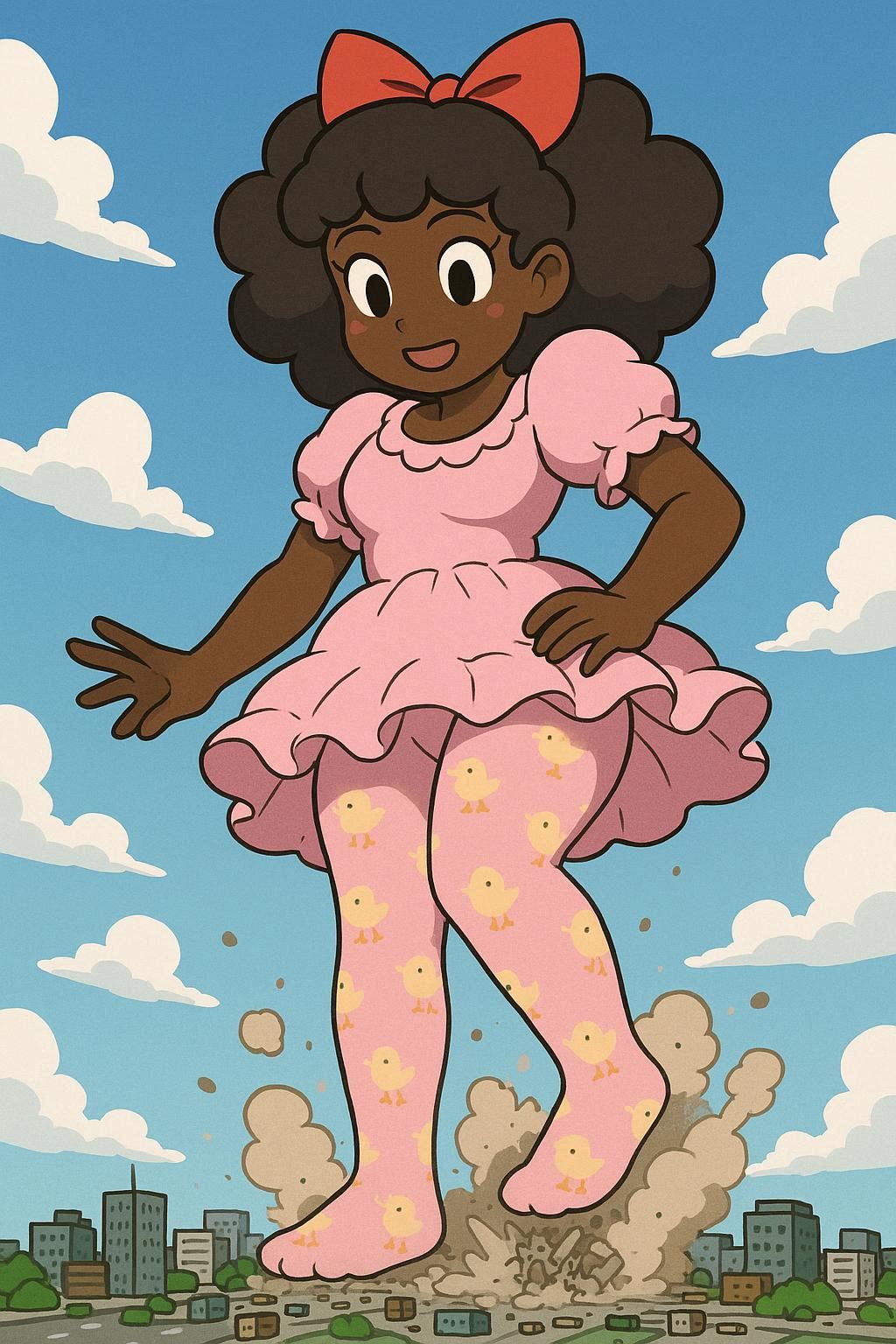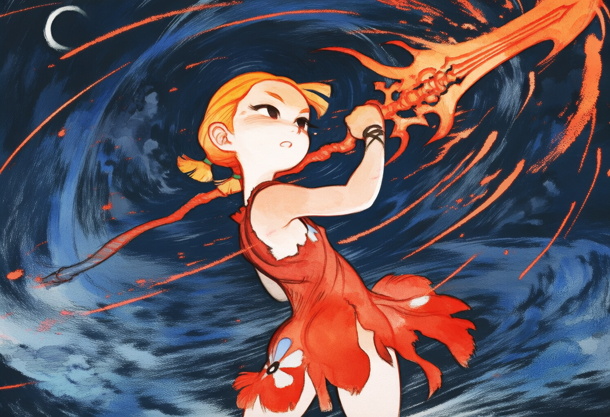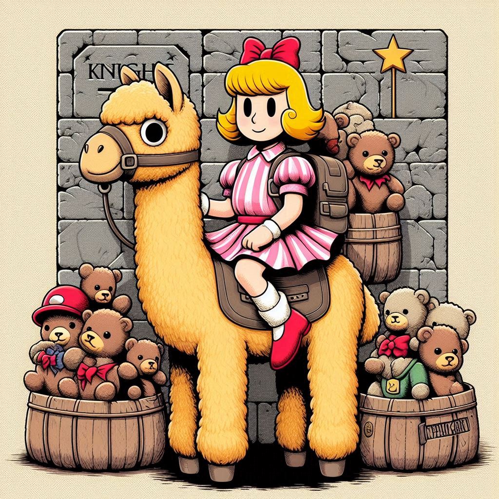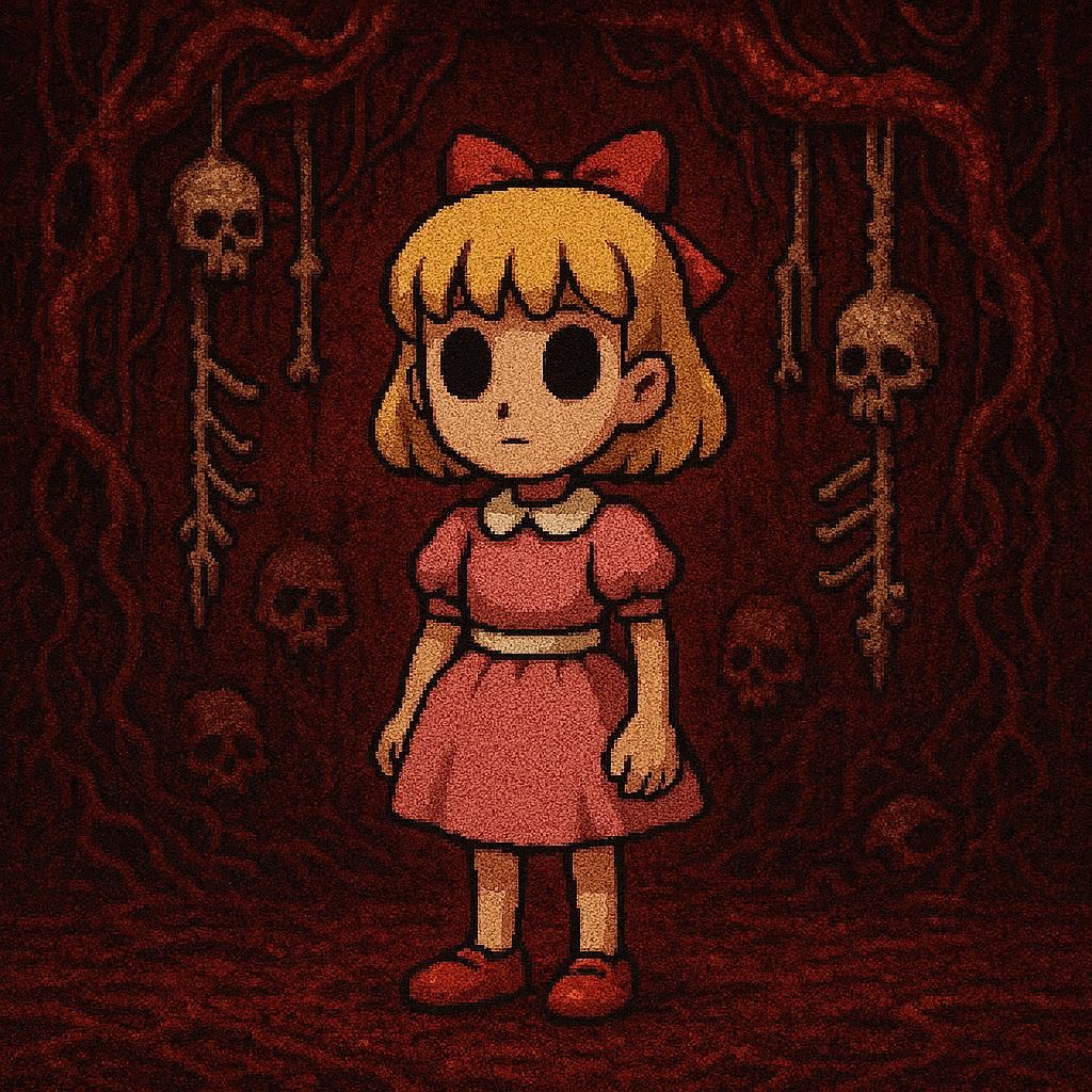 >>553318983prompt in case anyone's curious, I know gore isn't the easiest thing to get>Paula from Earthbound (large empty eyes, blonde medium-length hair, red bow, pink dress, red shoes). The background is the Menace level from Lemmings (red grimy aspect, tendrils, skulls and bones hanging).