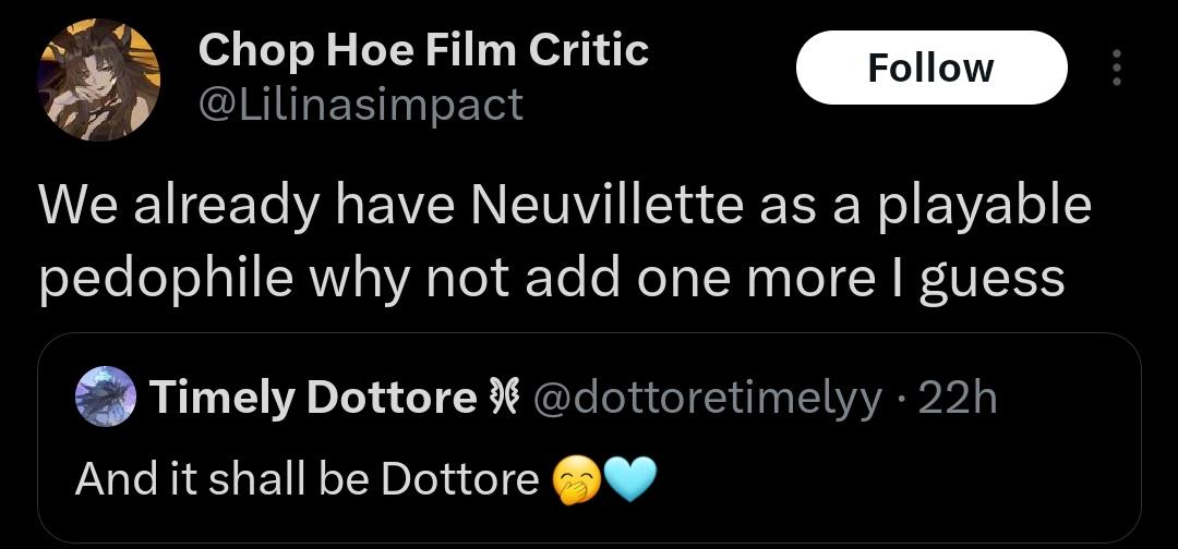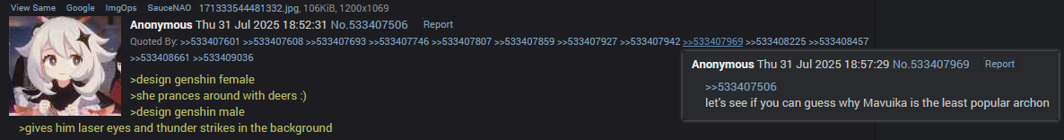 >>553320129It says "mildly unpopular". Until these opinions become loud enough to affect the devs so they stop pushing homo shit in general, Genshin will never heal.