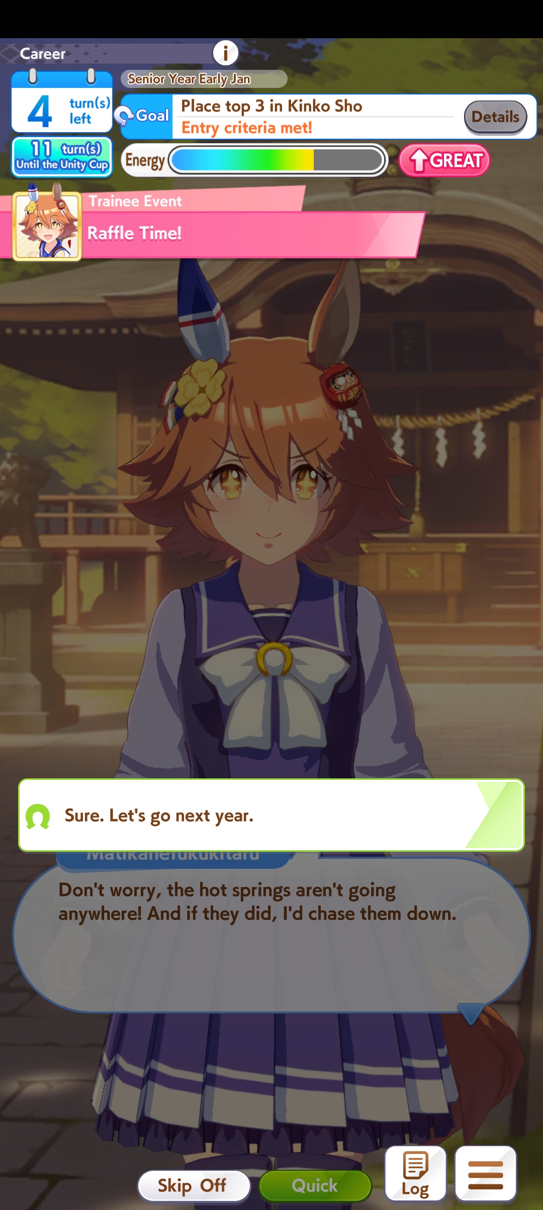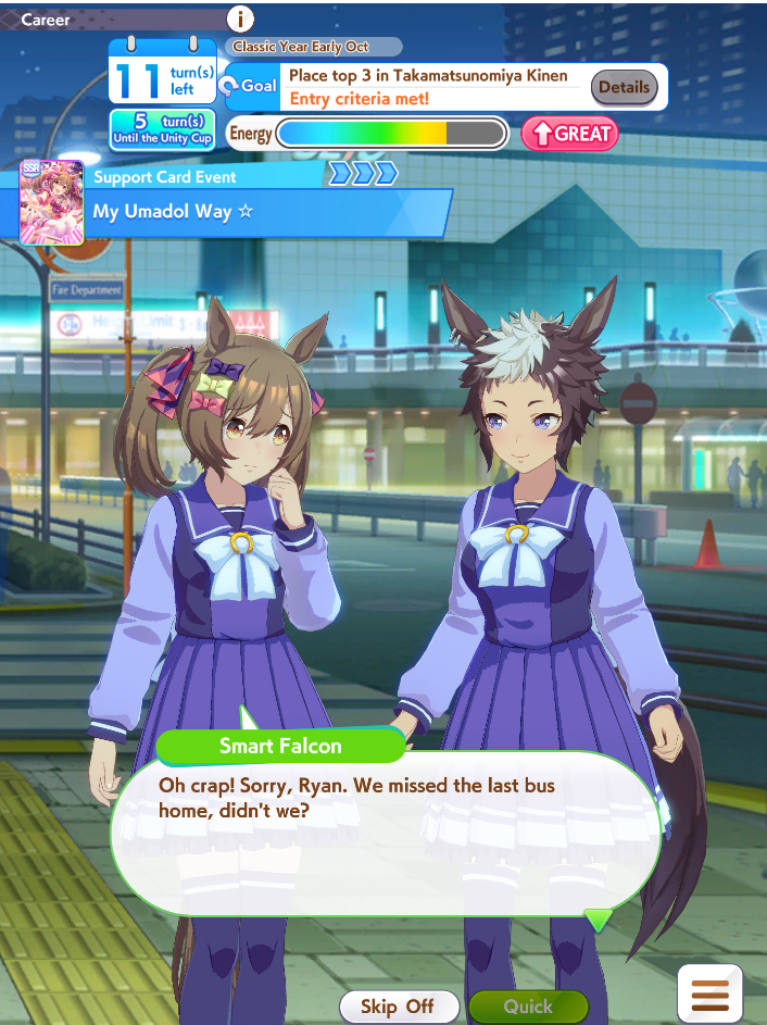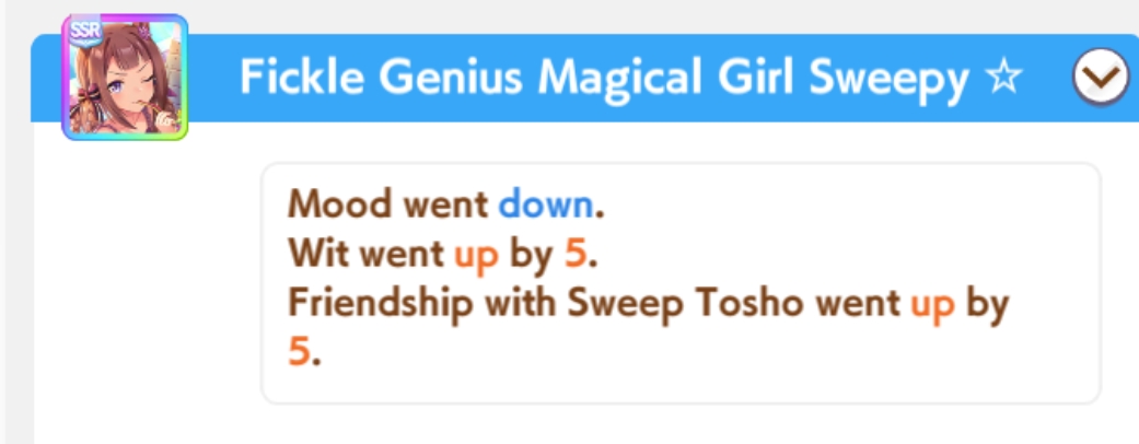 >>55335149020% race bonus on every cardrun every B+ g1run 2 races regardless of grade prior to a career goal