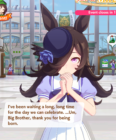 Previous: >>553315483>Global Game NewsLink your account to Cygames iDCurrent Scenario: Aoharu Hai aka "Unity Cup"Current Rate Up Trainee: Christmas Oguri Cap (3* alt), Christmas Biwa Hayahide (3* alt), Mejiro Dober 3*Current Rate Up Support Cards: Narita Taishin (SSR), Mayano Top Gun (SSR), Daitaku Helios (SSR), Vodka (SR)Late January - Sagittarius Cup - Nakayama Turf 2500mhttps://umamusume.com/news/100040/https://pages.snep.pw/uma/anni-skill-changes/>JP Game NewsCurrent Rate Up: NY Sakura Laurel 3*, NY Ikuno Dictus 3*, Oguri Cap 3* (Cinderella Form), Stay Gold 3*, Air Groove (Speed SSR), Fine Motion (Power SSR)New Scenario "Yukoma Hot Spring" releasedTimeline: https://uma.moe/timelineCygames Webstore: https://webstore.cygames.com/en/umamusume_en/>Thread Clubshttps://rentry.co/umaglobalclublistYou must be E3 (20k points) to join a circle. Apply with /uma/ or /vg/ in your profile or post ID in the thread.>All Guides & Resourceshttps://rentry.org/uma26Game databasehttps://gametora.com/umamusume (Click the gear to switch between JP / global server info)A basic guide for newfagshttps://rentry.org/umaglobalFind networks if your region is blocked from the game or clienthttps://www.umavpn.top/93Seiyuu & Concertshttps://rentry.org/umstUma Texthttps://umareader.idsmile.xyz/