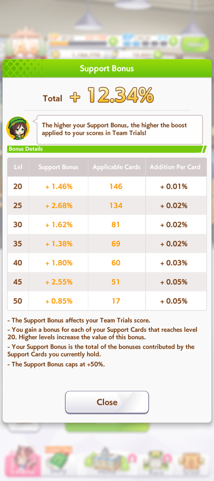 Current Rate Up Support Cards: Narita Taishin (SSR), Mayano Top Gun (SSR), Daitaku Helios (SSR), Vodka (SR)