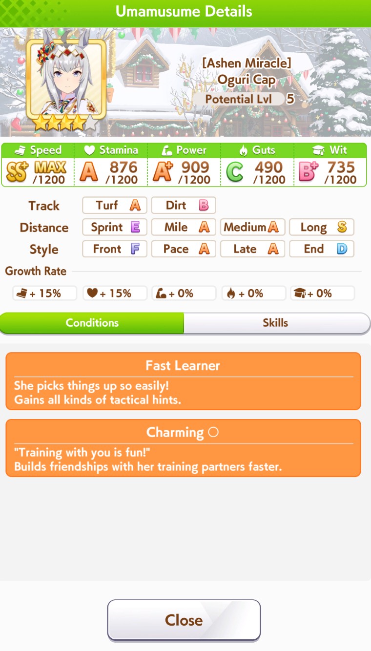 Current Rate Up Trainee: Christmas Oguri Cap (3* alt), Christmas Biwa Hayahide (3* alt), Mejiro Dober 3*