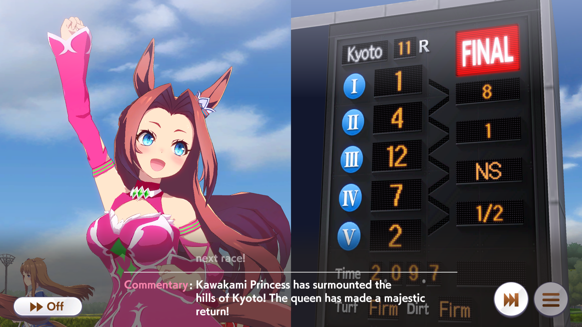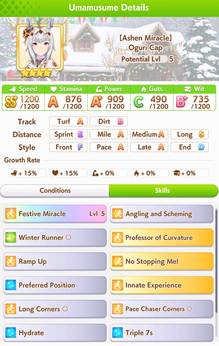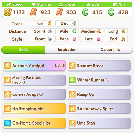 But XOguri needs either more accel or more late race velocity skills to win against ends with spurt+NSM, just triggering the ult is not enough