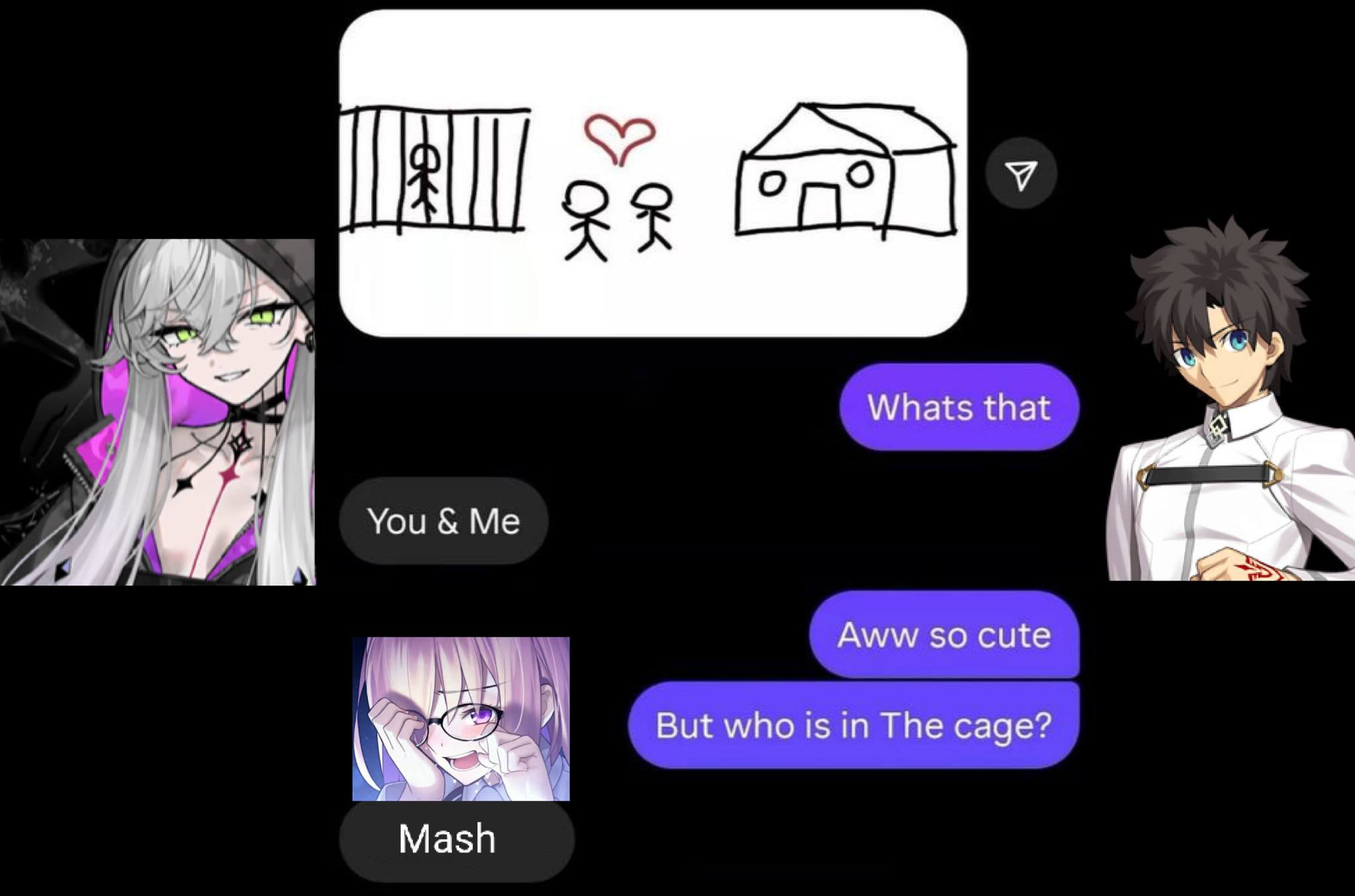 >Maris is about to destroy humanity and the universe>Heroic spirits: Zzzzz>Maris(Beast) is about to destroy humanity and the universe>Heroic spirits: :O