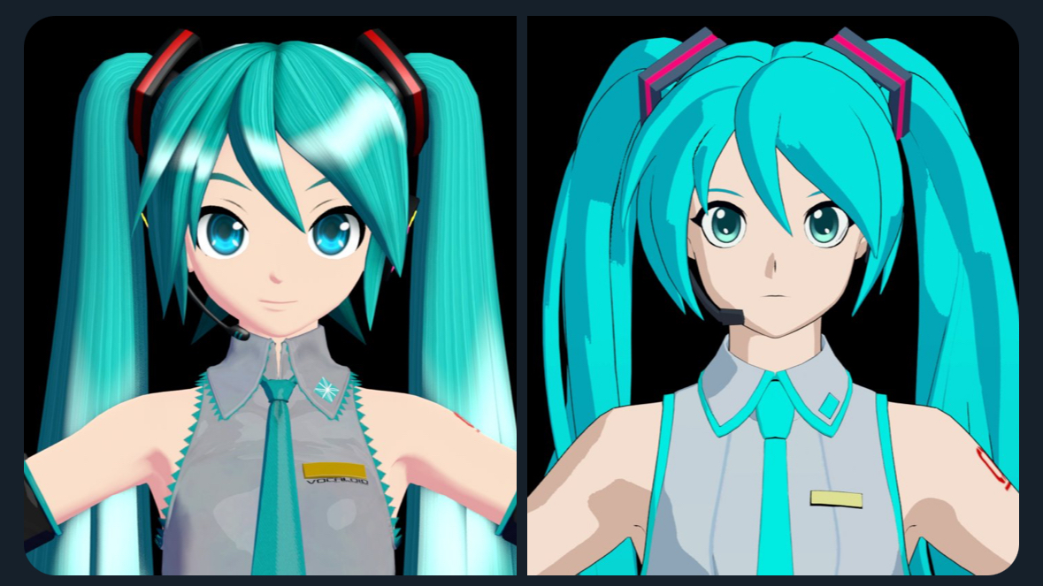 >>553366562Pretty sure they straight up used Miku's model to build her. It's kinda funky