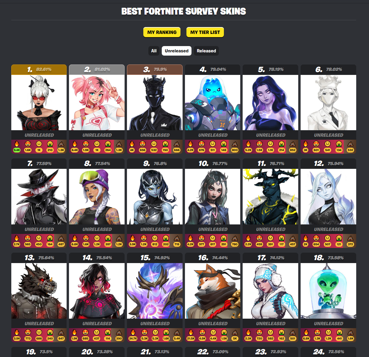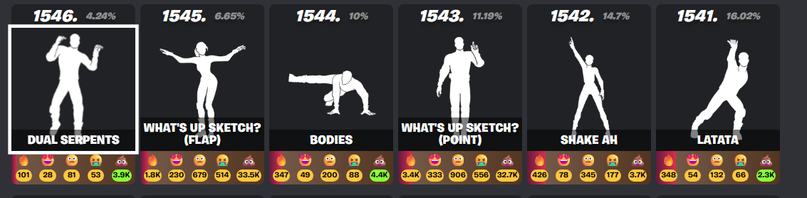 >all of the worst rated emotes in the game are from chapter 6 onwardsits saying something isnt it