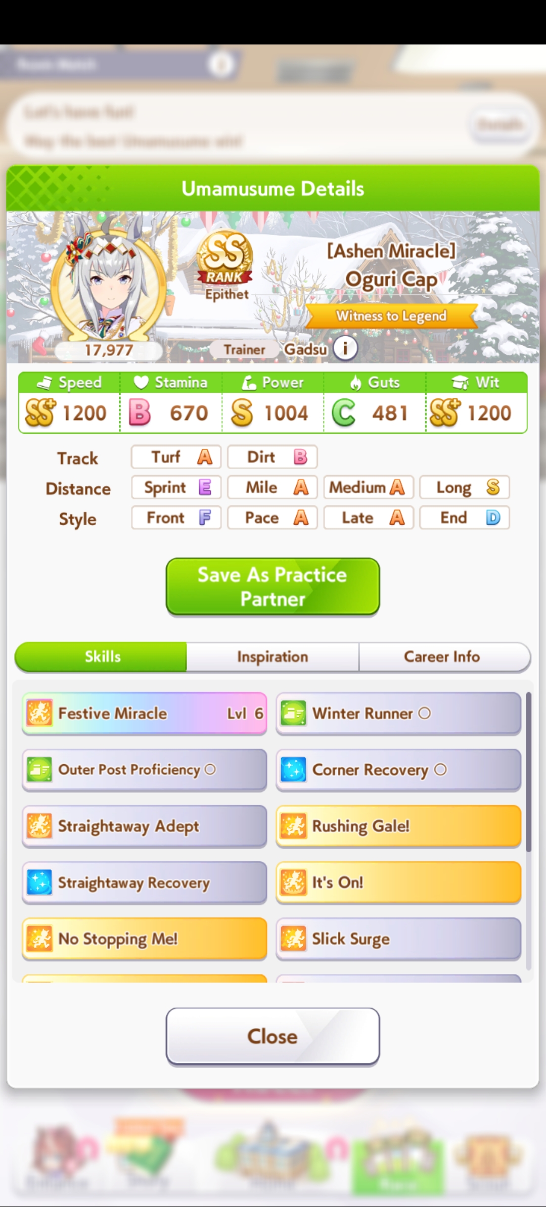 Complete casual here. How do i get an A+ medium-distance Uma? i keep getting not close enough. i use double power parents btw and have mlb kitasan. i just need so much stats...