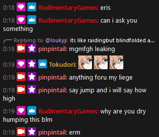 ebins: eris/faith/ame/rob/sani/louky/senny/kyoppi/lientri/jiggu/kenzou/node/yumyum/higanbana/roromio/scrubp