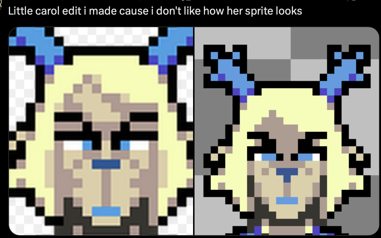 carol's sprite makes her look cross eyed af