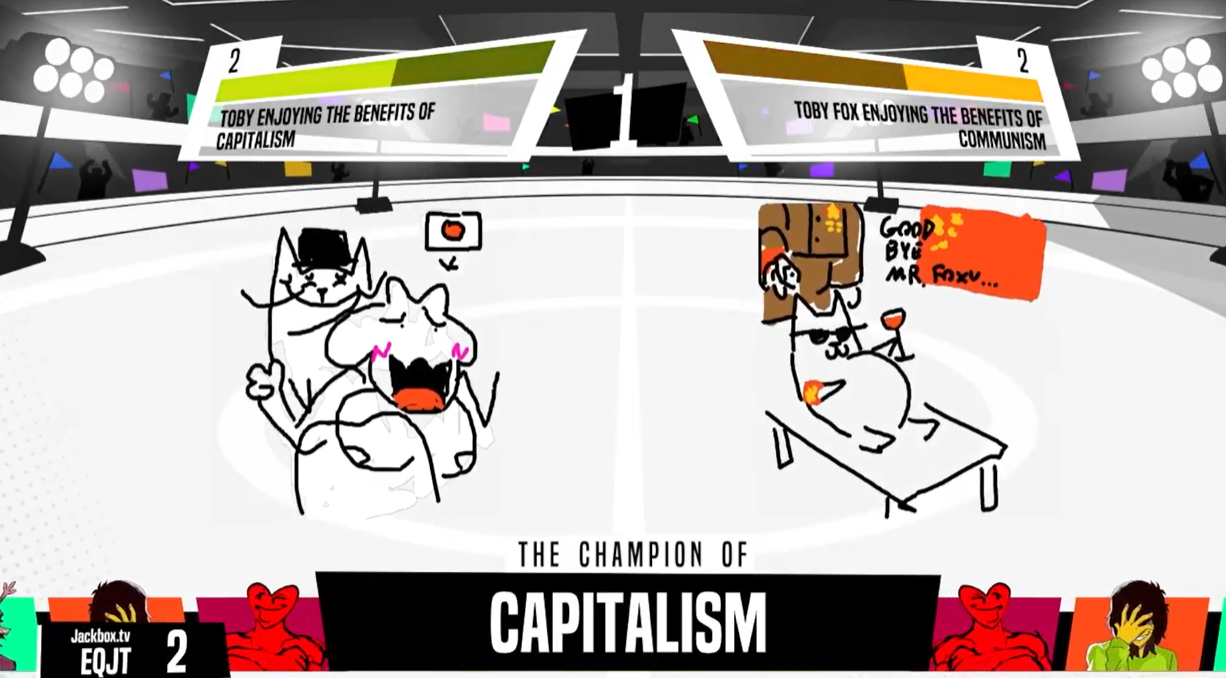 feel free to suggest whatever jackbox game you guys want to play next, unless it's joke boat fuck joke boat.Also i'm not playing push the button unless people actually want to join a voice chat for it.