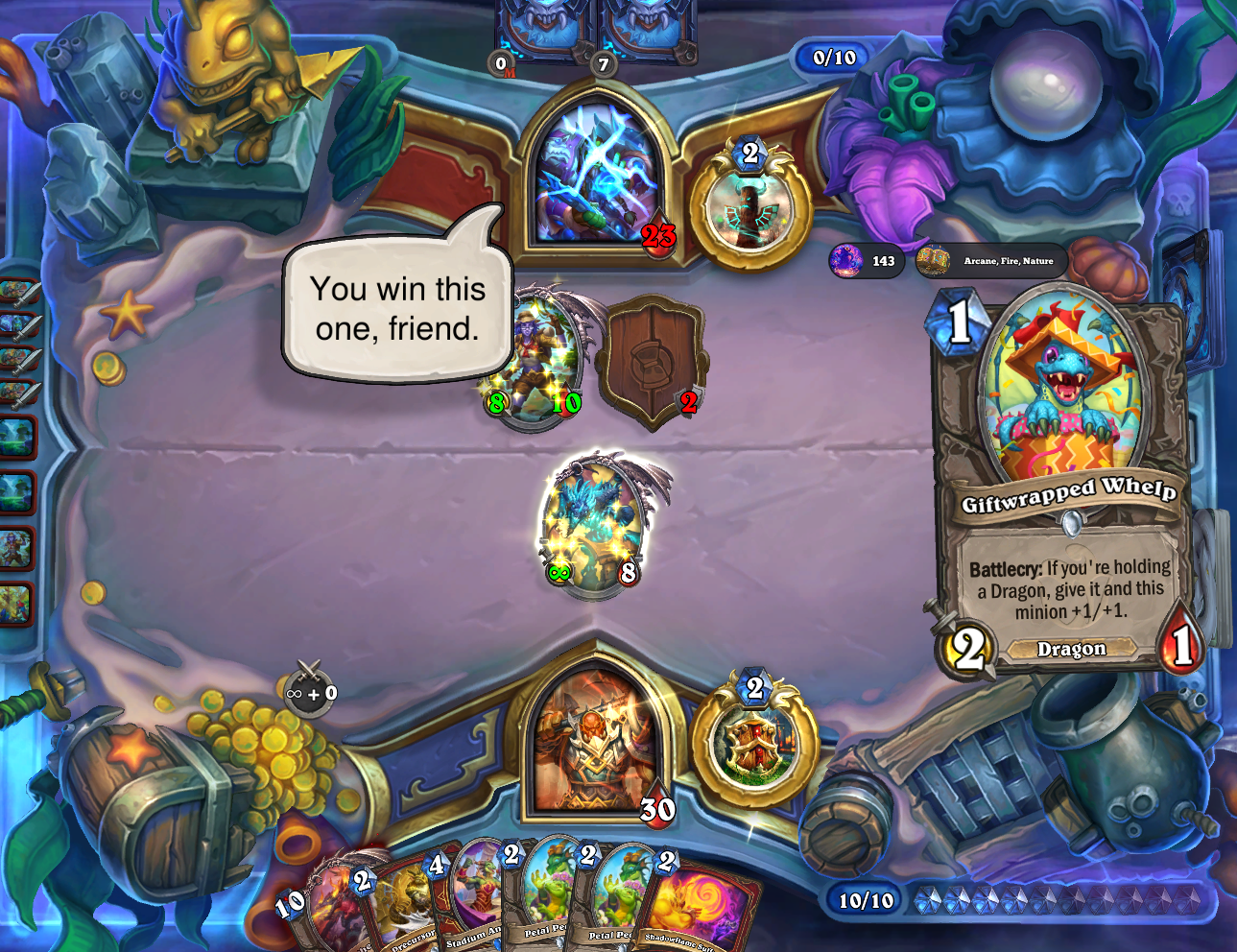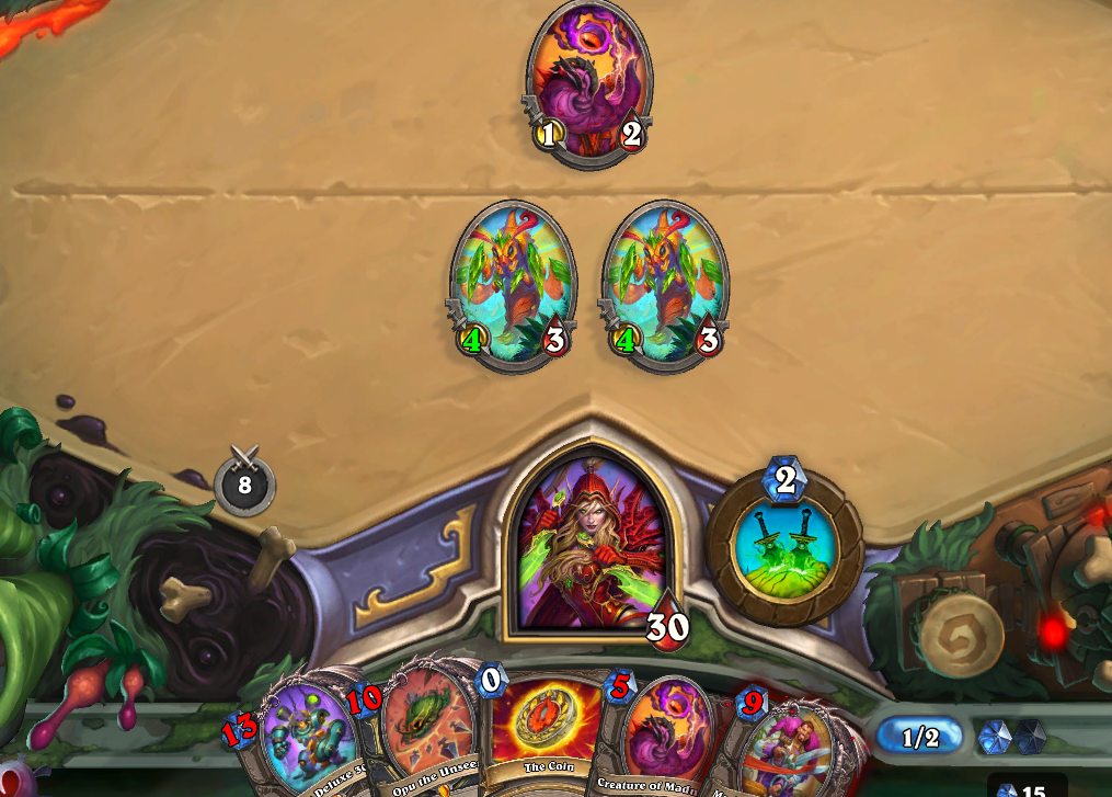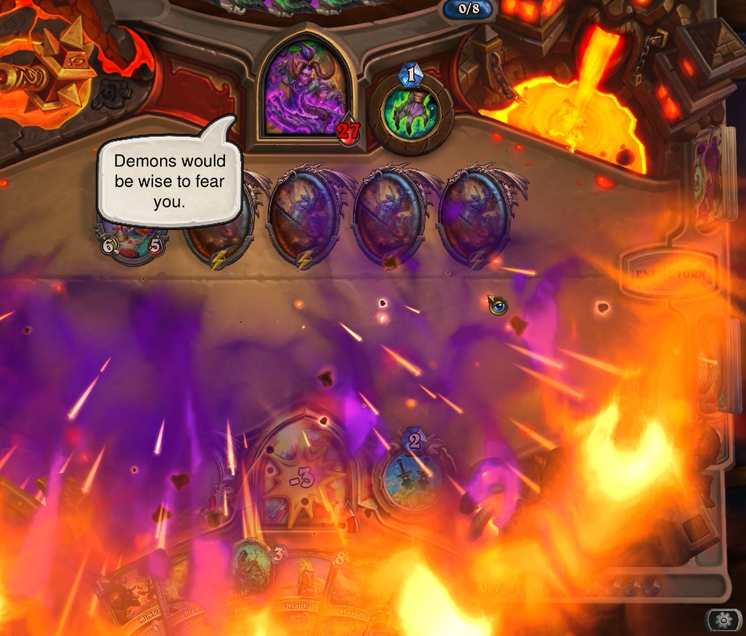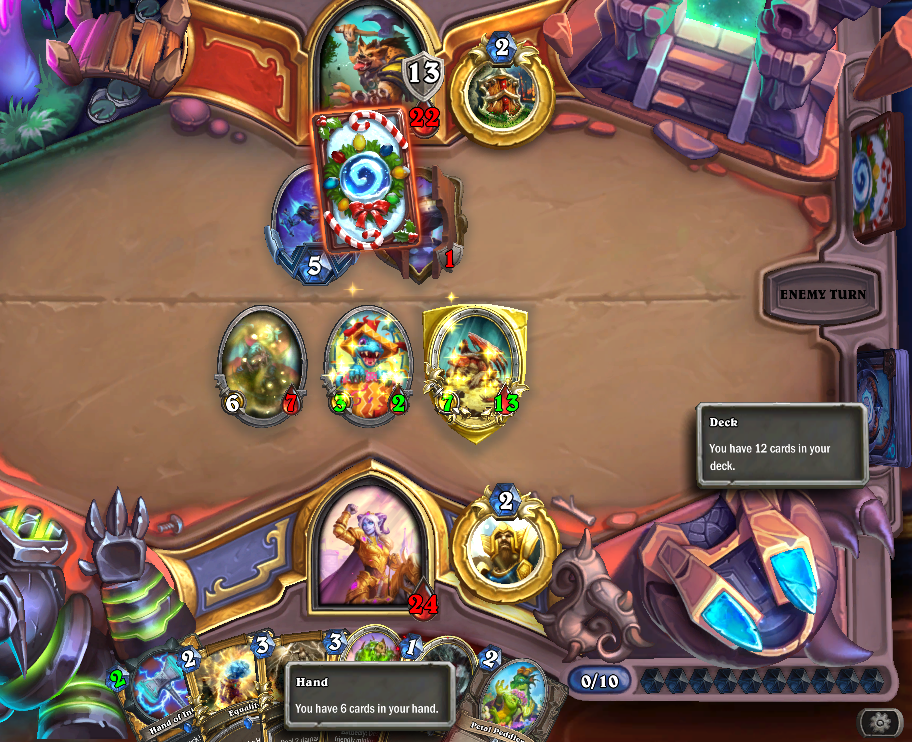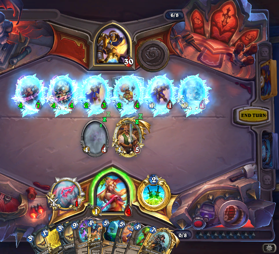 a dk just froze 6 of my minions, drew like 8 cards, killed another minion and dealt 10 damage t my faceand this is their "not meta" deck by the waylike you're so obviously playing against the designer's favourite class. it's just made to never ever lose