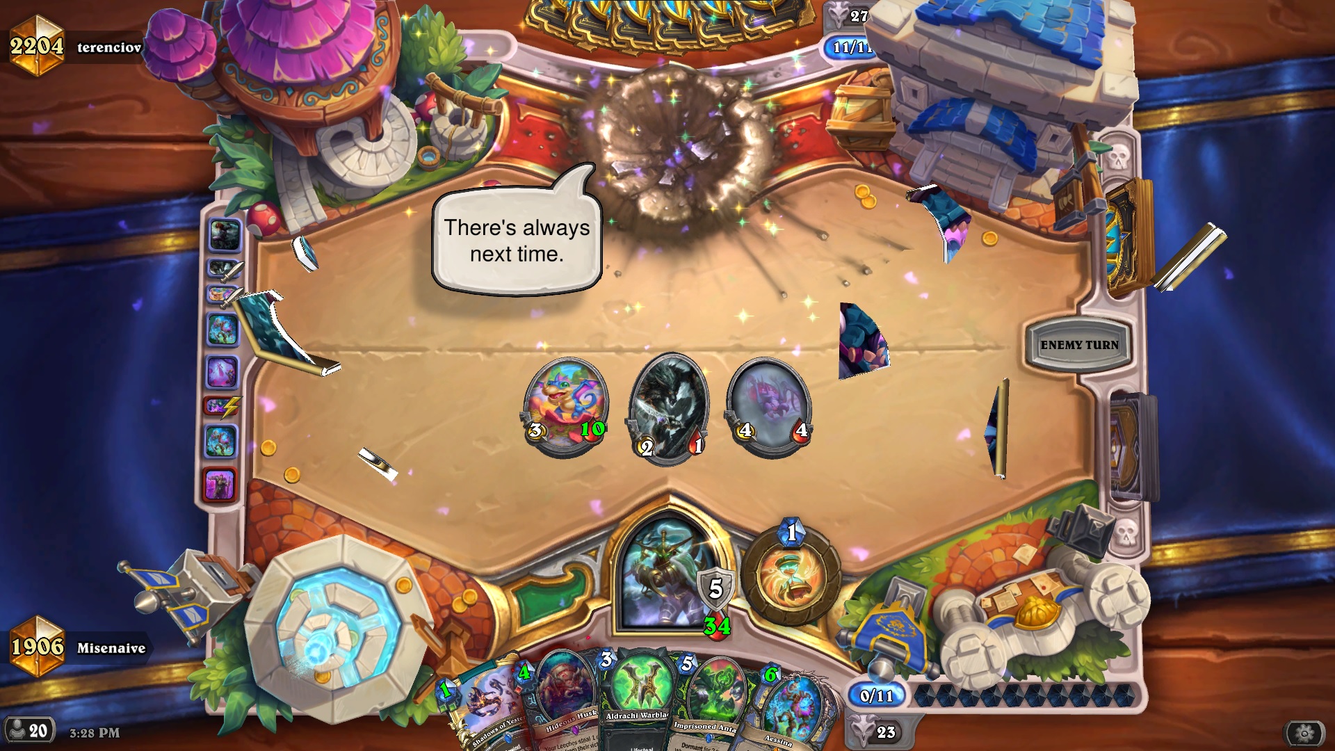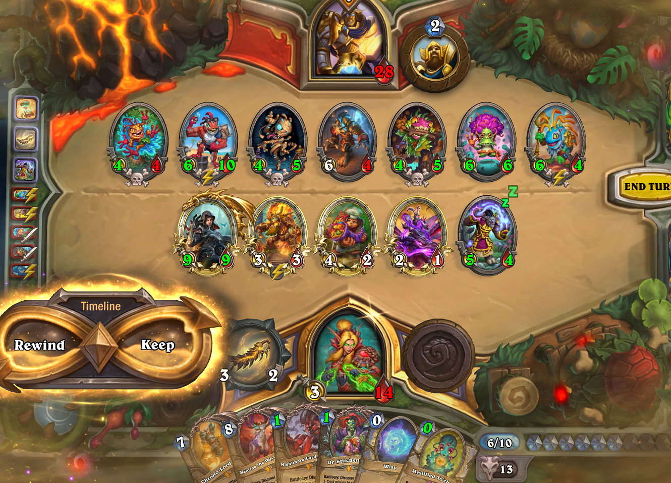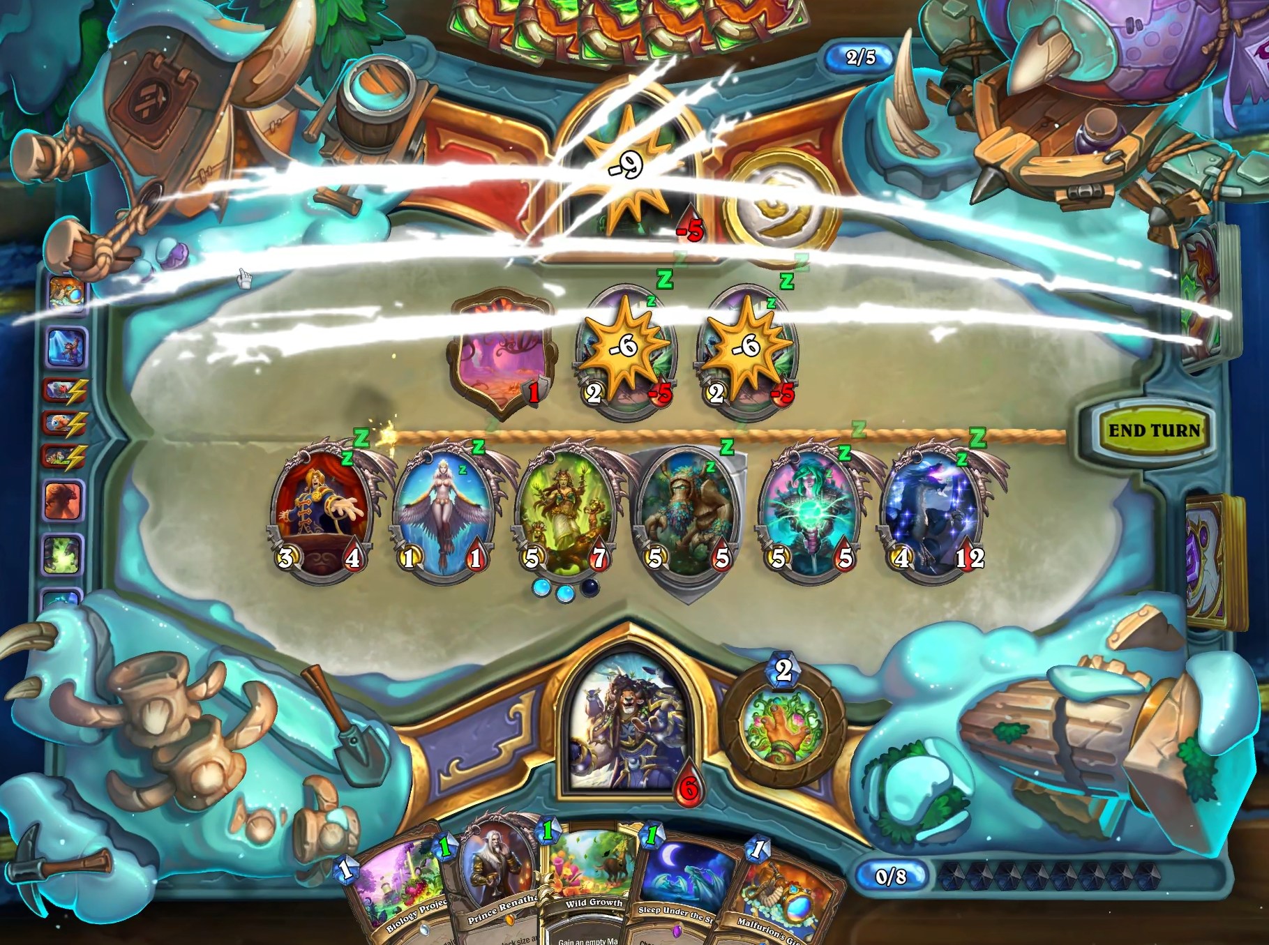 a dk just froze 6 of my minions, drew like 8 cards, killed another minion and dealt 10 damage t my faceand this is their "not meta" deck by the waylike you're so obviously playing against the designer's favourite class. it's just made to never ever lose