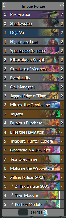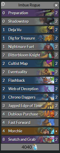 Im pretty sure the best imbue rogue will just be cards rogue cutting creature for bitterbloom and griftah and xavius for the weapon but I'm having fun with the greedier package.
