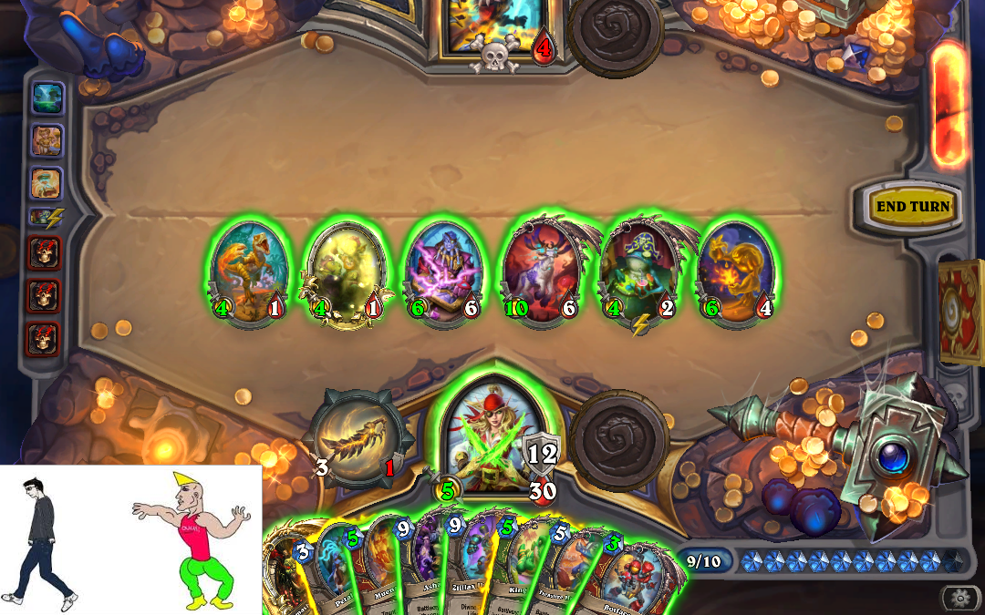 >>553453893That card is pretty balanced 3 mana to get the combo out and without it, it’s bad.This is why a lot of new players quit the game because they never learn what makes something fair, if it snowballs they just don’t get it.News flash, a 5/5 potentially getting 2/2 each turn isn’t game breaking. Most people need to take a stats class before commenting on whether or not something is broken.Control warrior and DK are two of the most balanced meta decks possible and RNG wise discover from dragon warrior makes it less RNG, not more.Crazy how I hit legend once 7 years ago, can’t be fucked to do it again and still know more than everyone.Dragon warrior needs that card but you don’t think what it’s like to play one, it’s harder than you think. Turns 1-3 alone have so many calculations it’s unreal