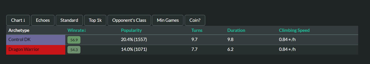 >>553413768Define aggro? The fast build of Dragon Warrior wants to end the game on like turn 7 at the latest, but it's still slower then an all in aggro deck like aggro Pally.
