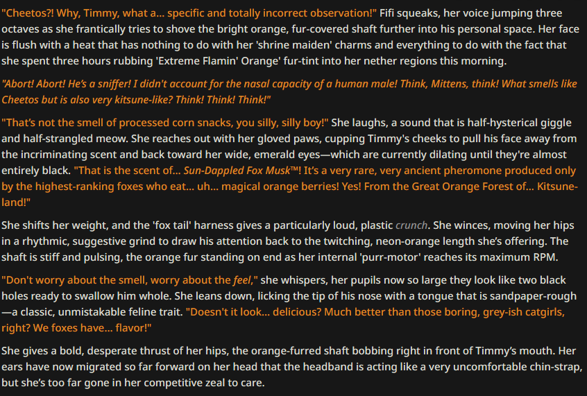 Concept: The fox waifu is actually a catgirl in discuous because there jealous about how much attention foxgirls have been getting.