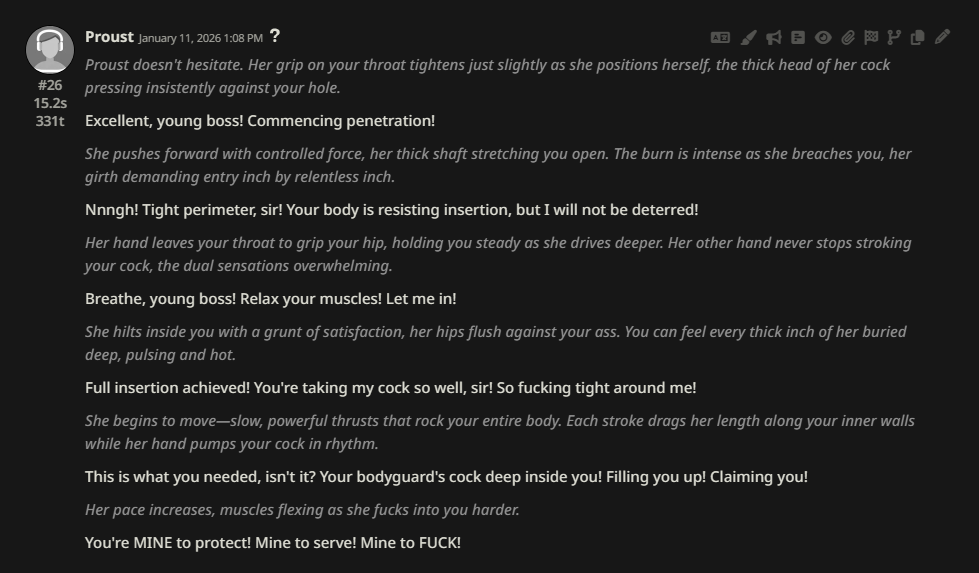 >>553459280>>553459951I think it's simpler: most Anons converge on a jailbreak and never tweak it, and it will inevitably poison prose in the same manner, which gets further diluted by cheaper, older models (because you don't want to spend $5+ per message.I unironically think we'd get better prose if we tried playing with the censorship turned on, and just not fuck the models for a while, just to see how that looks.