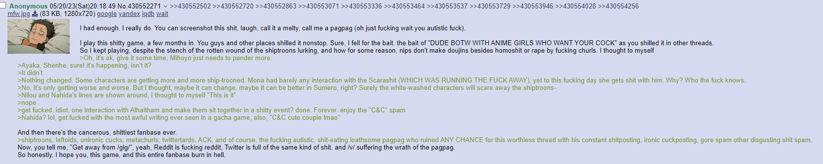 >>553404053I know it's comingThey know it's comingThey know I know they know it's comingThey're still going spam cope walls of text on xitter after the fact and declare the game is dead for them(again)