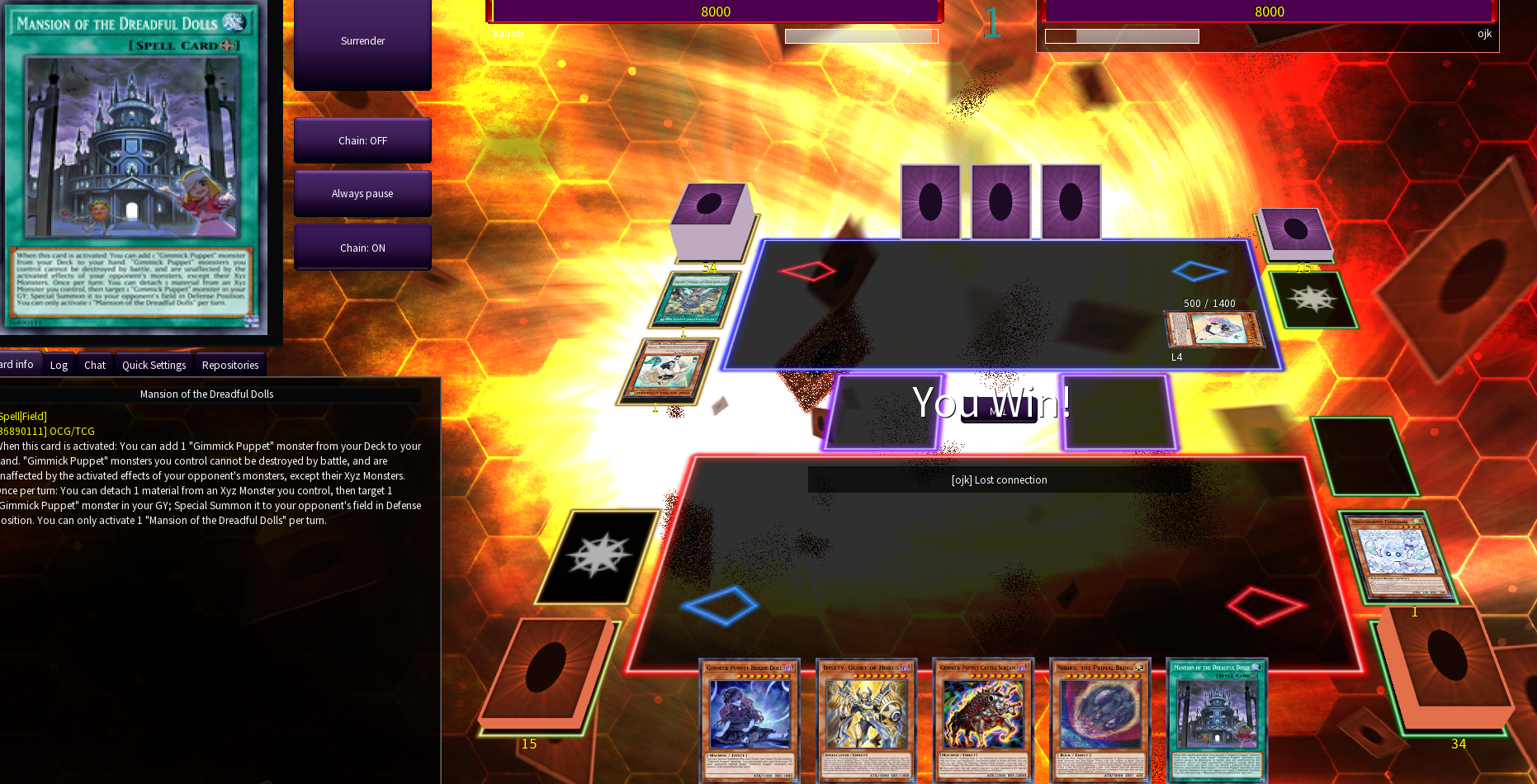 for today's personal yugioh antics: been playing ethical gimmick puppet for the day (no ftk), opps just quit anyway 9/10 times the reason im trying this is i've been measuring how much of an outlier cards like mansion/sangen summoning have to making blind second otk work without a hitch if that makes senseturns out your opp not being able to target or respond to you is in fact a big deal