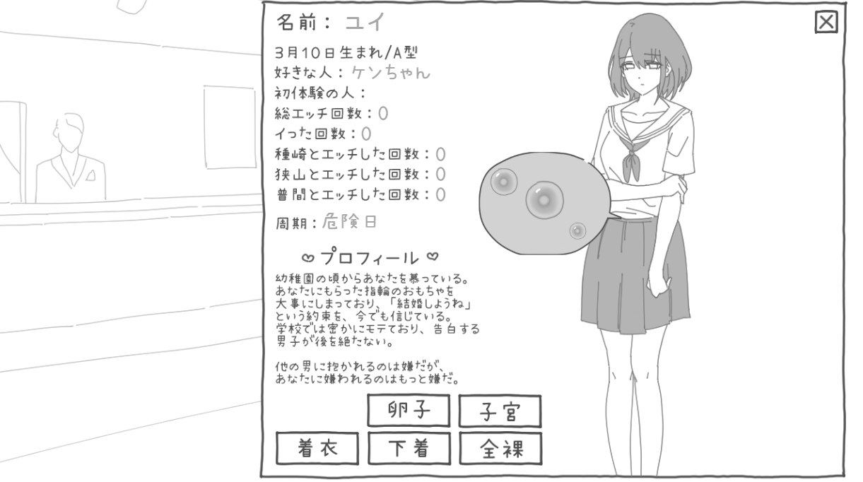 >>553436472It's well made but small and simple as heck at the same time. The main catch is that there a 5 gals to court. You can interact with 3 or 2 at the same week considering MC's time shifts between girls' visits and working shifts.>>553436527You grind affection with each girl. Modifiers are applied with different snacks\books\games you can buy for a week duration so you get uneven progress. Also girls have different groping preferences. So MC can become a nipple pro but a girl is "cold" there hence another modifier for uneven progress.