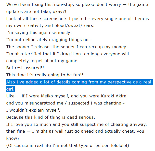 >>553571724>Release a shit game>Got flame so hard, one of the reason being pic related>"I'm going to revise my game, since you guys hate it so much">Proceed to make the same mistake againShe'll never learn, I hope she fuck off from this community