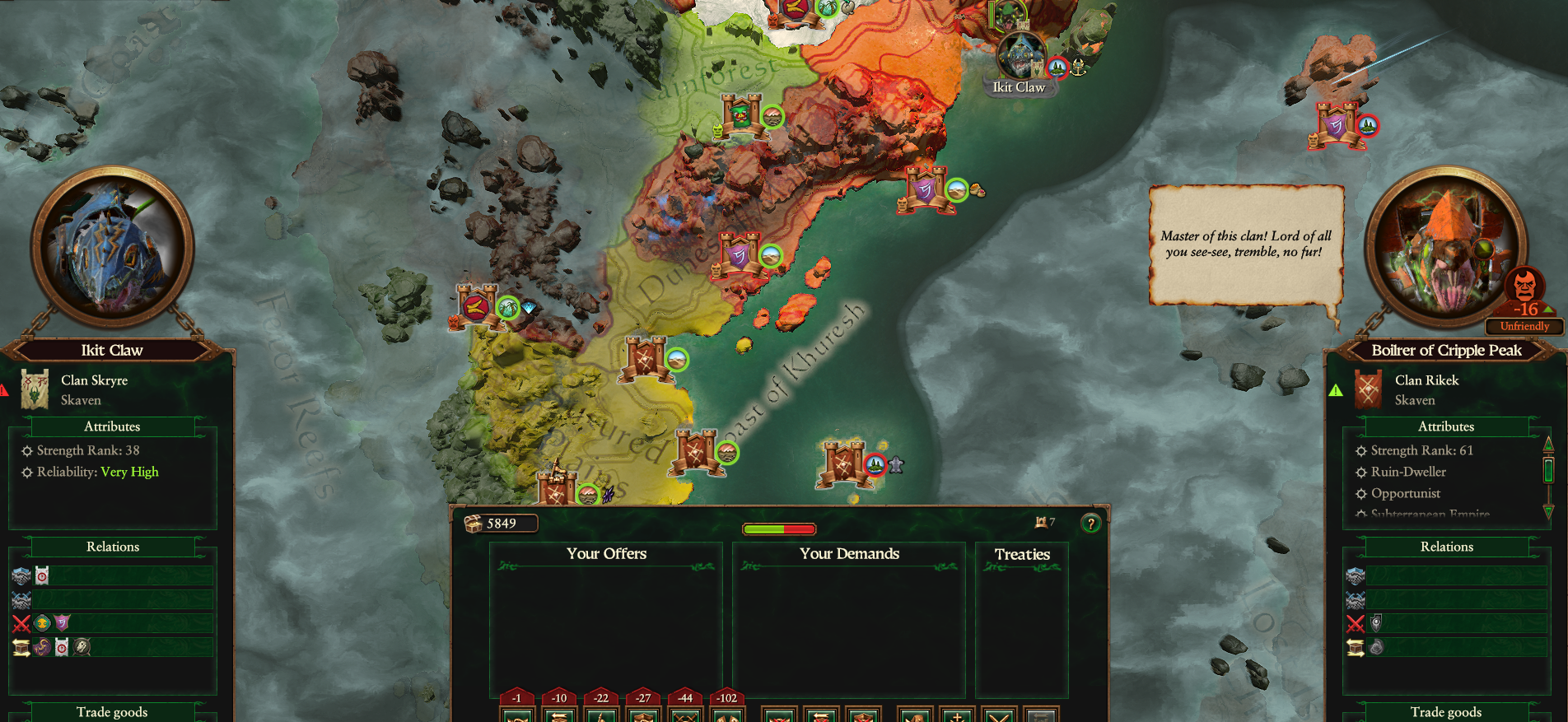 >>553492081Uhh.. I dunno if that's a joke but>settlement become razed>cancelled the military allianceSkaven cities are hidden, they are always ruins unless you have an alliance with them.