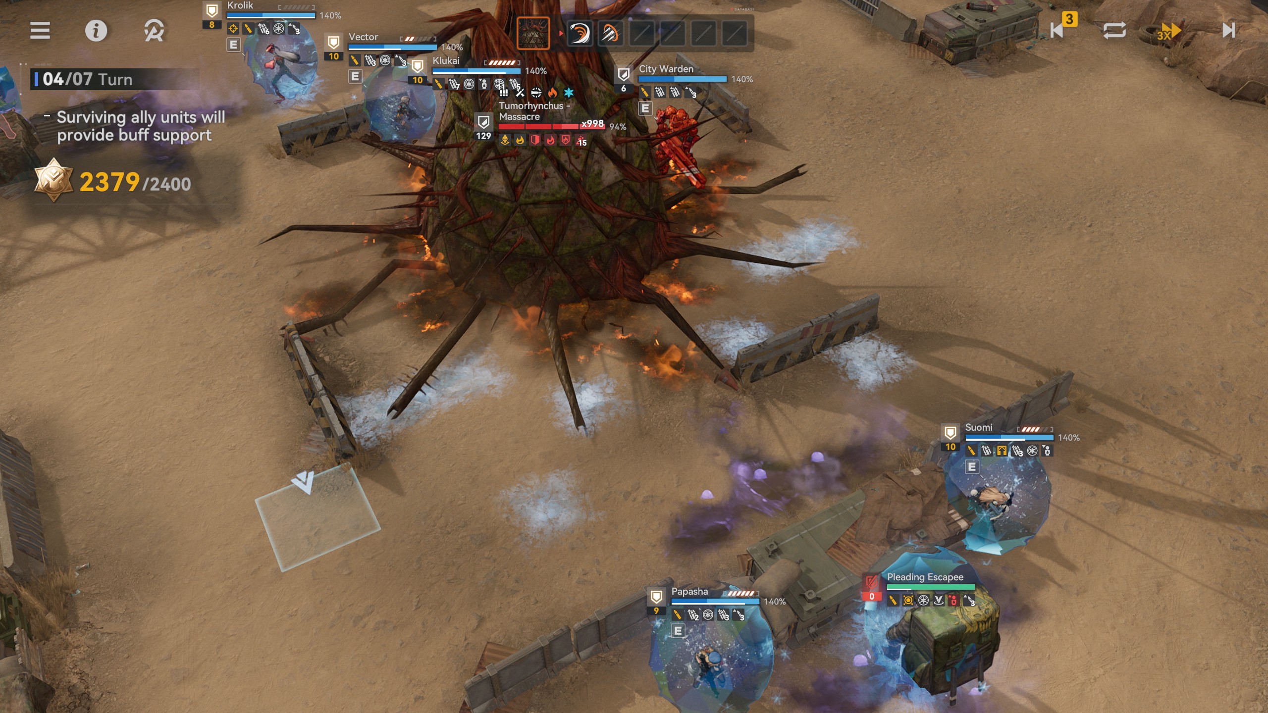 >>553425724I'm not sure how it works with extra action/turn. It might only be the first action a doll does per turn, but it might behave differently if the doll has multiple turns (Tororo as an example). I'm not sure since I haven't gotten to experiment much. I just know for sure the first action you do with a doll it will volley fire on every enemy you hit with that first action definitely.Vector's aoe is huge so you can hit many enemies with her.