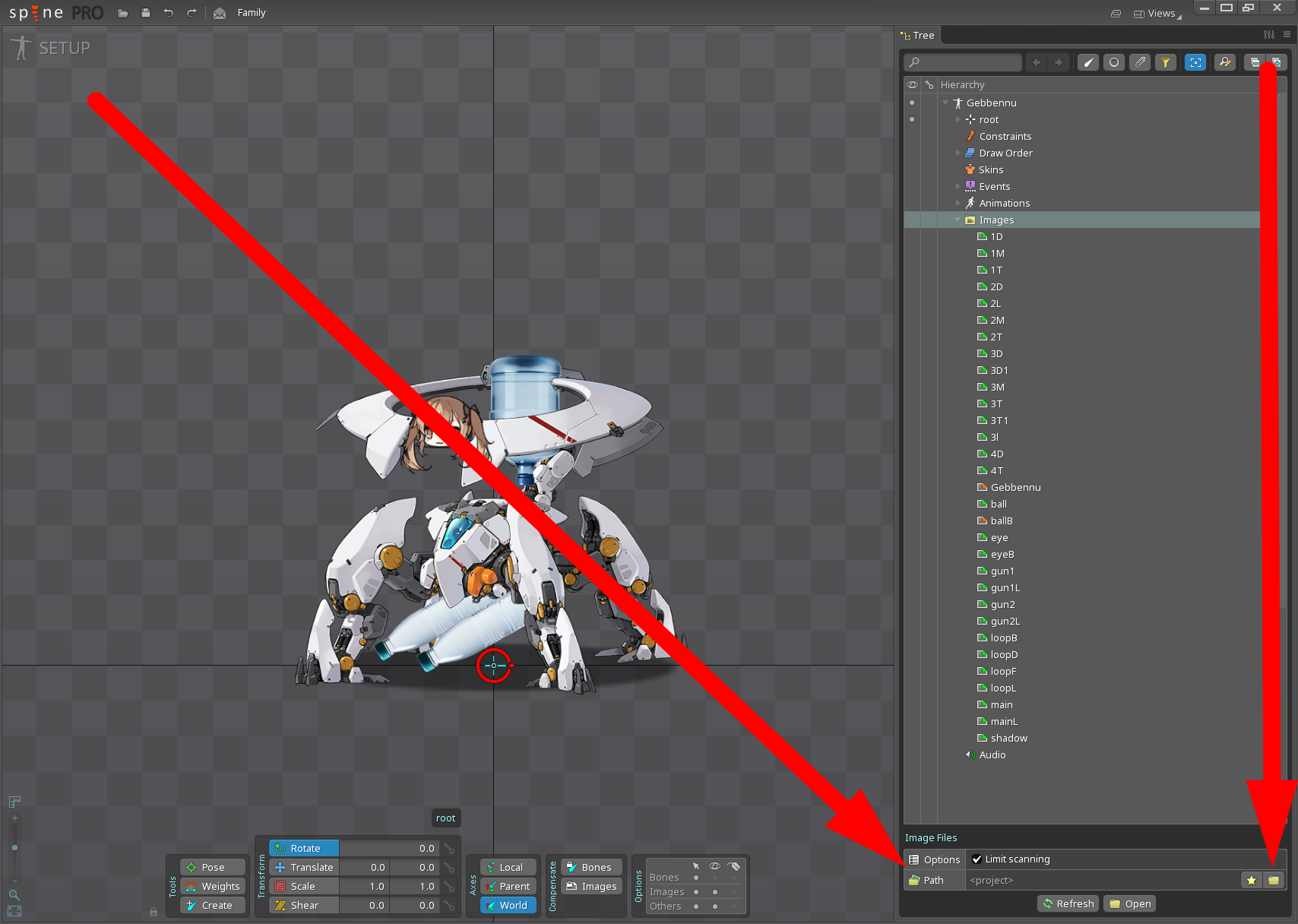 >>553477359>>553478141You made sure to drag that .json file into spine Pro? It should let you create a skeleton for you to start editing and with the missing sprite images, you just do the previous >>553476801 file path for it