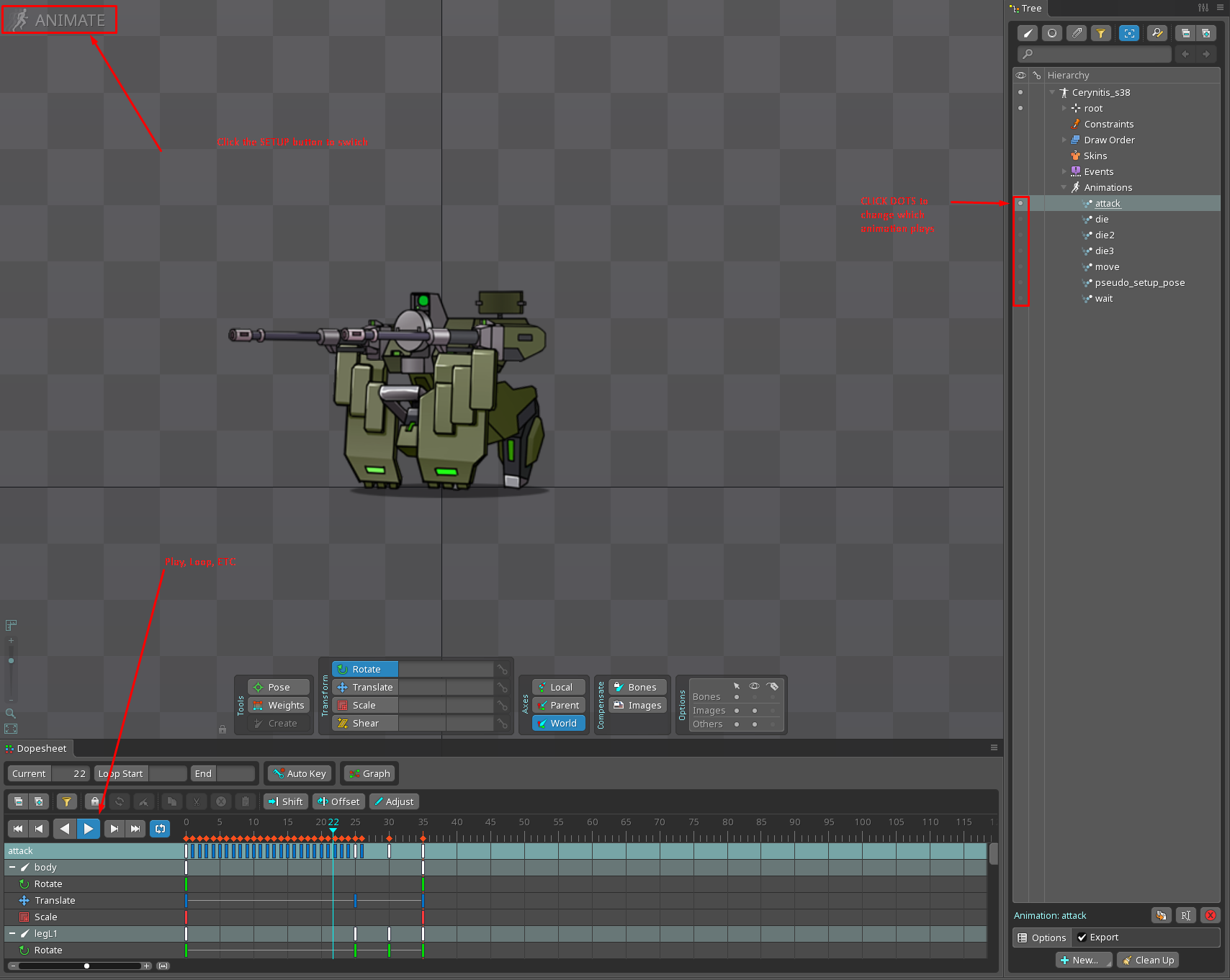>>553478919For selecting animations it's just those dots in the side, I click the animation button then choose which one I want to play.