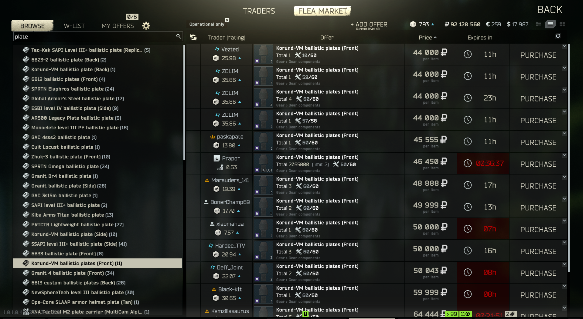 >>553436089who does ram stick barter for frontplate? Prapor only has back