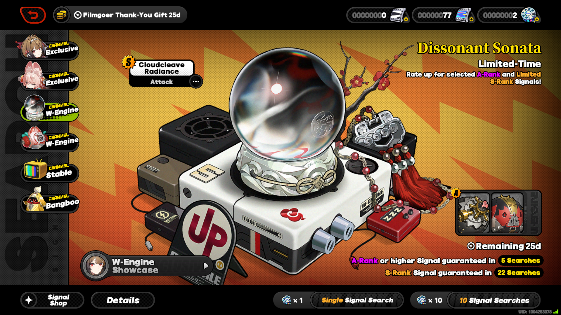 Previous: >>553391487>NewsAgent Record | Ariahttps://www.hoyolab.com/article/43039871Agent Record | Sunnahttps://www.hoyolab.com/article/43037944Version 2.5 Special Programhttps://youtu.be/Ldeqt2WMiYMTGA 2025 Special Videohttps://youtu.be/X-g1N9mNjzs>Newest Trailer/Teaser/Character demohttps://youtu.be/35fRoOYhE6Y (EN)https://youtu.be/BSKG5nhlj5s (JP)https://youtu.be/D_MtaEZRy3E (EN)https://youtu.be/eJBlfglfs-4 (JP)https://youtu.be/9Lshum4Peqw (EN)https://youtu.be/oCcNiUZ5ogU (JP)https://youtu.be/TU5Bt8MLPjk (EN)https://youtu.be/bviZmH3w5ew (JP)>Upcoming Events for 2.5https://zenless.hoyoverse.com/en-us/news/161728All-New Program 12/29 - 02/05Special Visitor 12/29 - 02/09Potential Hypothesis New Chapter Reforged 12/29 - 02/09Sword Seeker Chronicles 12/31 - 02/05Joint Investigation: The Divine Maze 01/03 - 01/22Shadow Riptide Clash 01/09 - 01/26Wish Filing Station 01/14 - 02/02Advanced Bounty: Area Patrol 01/16 - 01/21"En-Nah" Into Your Lap 01/21 - 02/05Angels and Delusions of Muse 01/21 - 02/05Data Bounty: Combat Simulation 01/30 - 02/04Angels of Delusion Training in Progress 01/30 - 02/09>Redeemable codes (claimable in-game or online)https://zenless.hoyoverse.com/redemptionZENLESSGIFTZZZCREATOR25ZZZ25MINAZHAOISFREEMEETTHEVOIDHUNTERShunguangWinterGiftZZZ2026>Resources and useful linkshttps://rentry.org/zzzlinkshttps://rentry.org/ZZZ-Friendshttps://rentry.org/ZZZ-Guilds>/zzz/ OP pastebin (use this if making new thread):https://pastebin.com/PzbMf13P