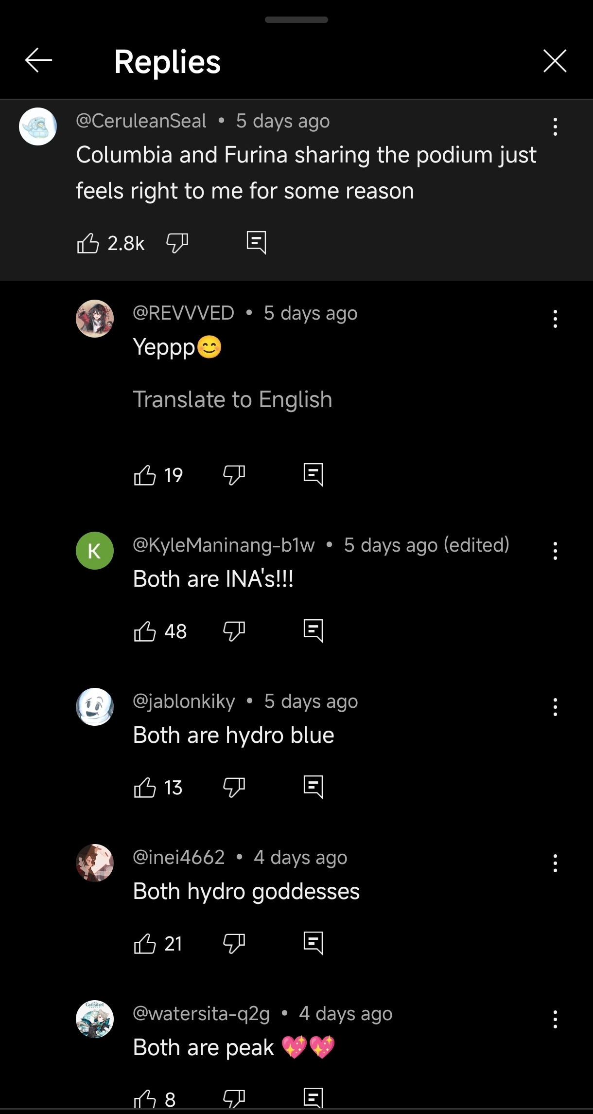 >>553439385Dunno about Jakarta but she's not popular in Manila either. In cons you see a lot more Furinas than Mavuika cosplay.