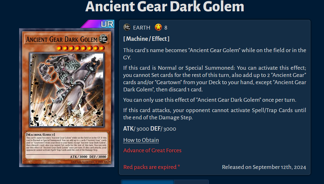 #1132 Fairy Tail editionPrevious: >>553232454Yu-Gi-Oh! Master Duel is an online multiplayer videogame using the Master Rule Format.>Offline Modhttps://github.com/pixeltris/YgoMaster>Other Modshttps://www.nexusmods.com/yugiohmasterduel/mods/>Current PacksSelection:The Apical Predators (D/D/D, Megalith, Yummy, Solfachord)Aerial Superiority (Dracotail, Odion, Artmage)Birth of a Challenger (Staple cards)Secret:A Dance Dedicated to the Heavens (Alt Art Mikanko Ohime and Hu-Li, Uzuhime)>Upcoming EventsLegend Anthology (Jan 13th- Jan 23rd)This event will feature event-exclusive regulations for cards and archetypes used by legendary Duelists such as Dark Magician, Blue-Eyes White Dragon and Red-Eyes Black DragonFusion x Synchro Festival(Jan 19th - Jan 27th)>BundlesMikanko Alt Art bundleYummy Collection BundleUseful resources for info on Decklists, Events, etc.>YGOPro Deckhttps://ygoprodeck.com/category/master-duel-decks/>Road of the Kinghttps://roadoftheking.com/>Appmedia (only in Jap)https://appmedia.jp/master_duel>List of Secret Packshttps://yugipedia.com/wiki/Secret_Pack>Official Master Duel Pagehttps://www.konami.com/yugioh/masterduel/en/>Yu-Gi-Oh! Probability Calculatorhttps://www.deck-probability.com/index.html>Small World Helphttps://small-world.yugioh-api.com/resolve>Master Duel Metahttps://www.masterduelmeta.com/