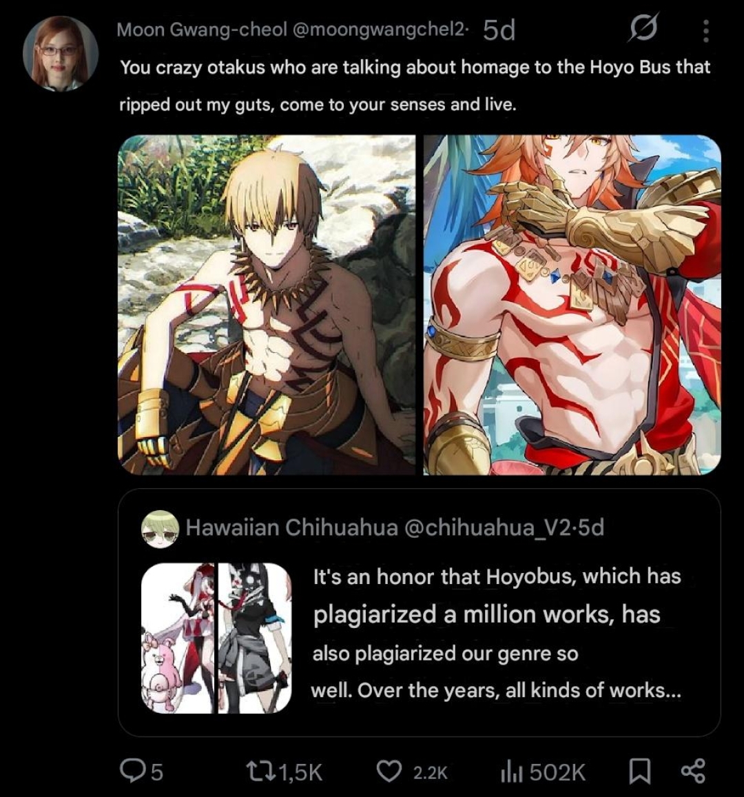 bro they even copied the pose when they first revealed him along with all the red and gold motifs, the first meeting with phainon is copied from gil and enkidu, you are retarded im afraid