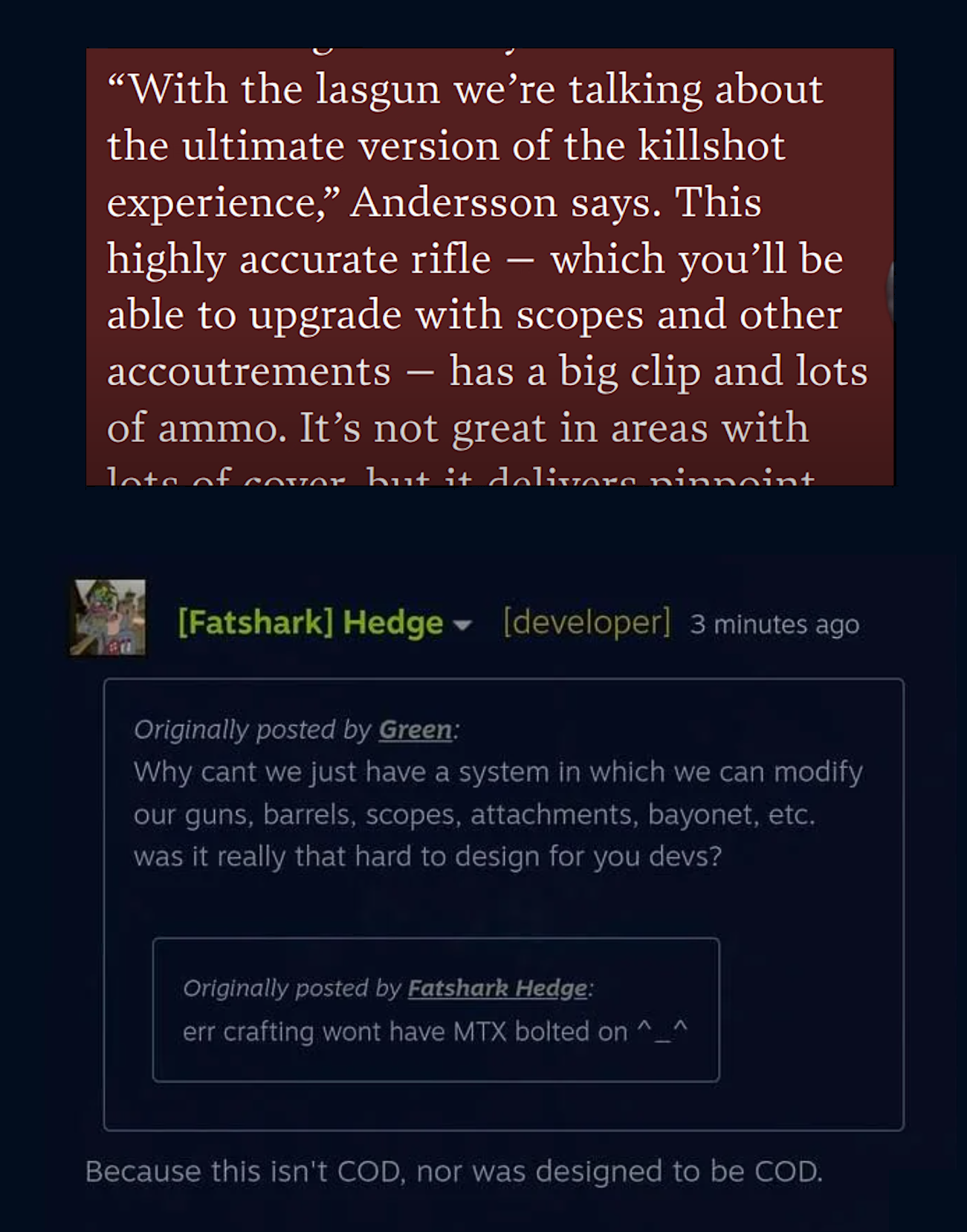 VT is far superior in the characters though, I'll grant that much. Who the fuck cares about Masozi and Zola? Or any of the Reject personalities? completely soulless cardboard characters and no, Hadron and Kayex cannot carry Darktide on their own
