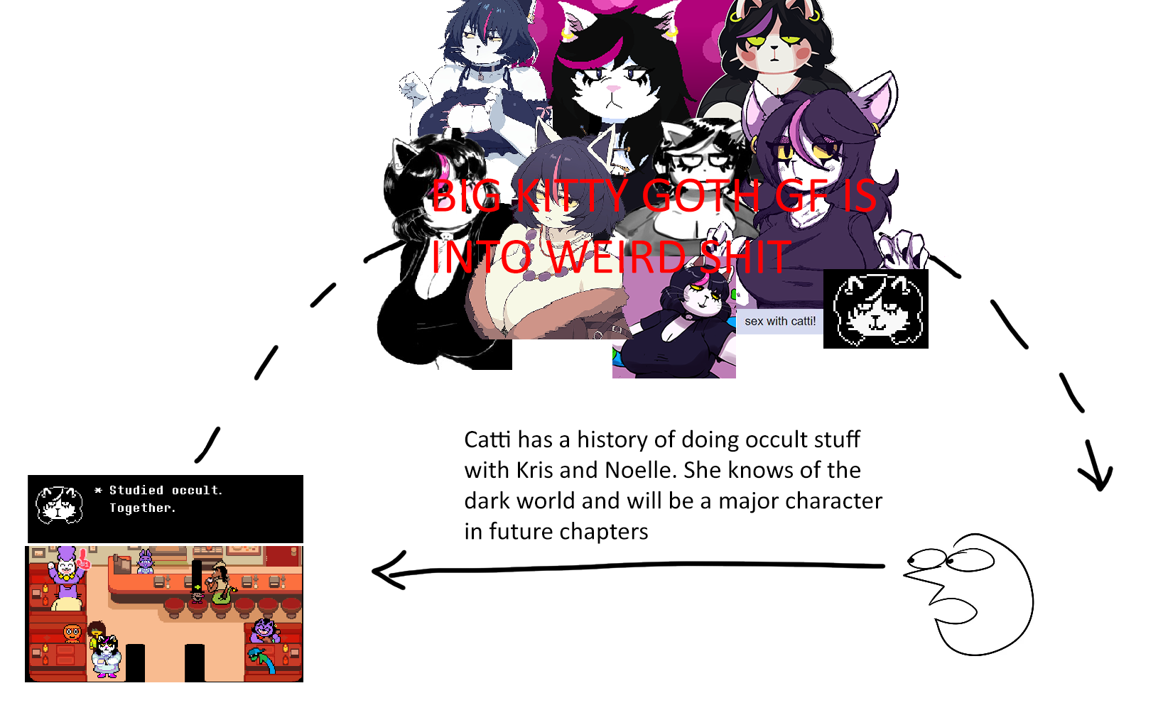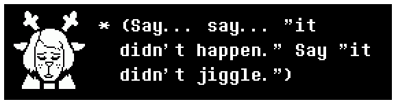 glue edition Previous delicacy: >>553435535Spoilers ahead, proceed at your own Frisk. -DELTARUNE CHAPTER 1-4>https://store.steampowered.com/app/1671210/DELTARUNE/ -The Old Game>https://undertale.com-The Old Game's Demo>https://undertale.com/demo -The New Game>https://deltarune.com -The New Game's Progress>https://toby.fangamer.com/newsletters/winter2025/>https://toby.fangamer.com/newsletters/>https://deltarune.com/#news>https://www.twitlonger.com/show/n_1sqn3p9 -Merch>https://www.fangamer.com/collections/undertale>https://www.fangamer.com/collections/deltarune -Books-Undertale Artbook>https://pastebin.com/1MRmU0Gk -Legends of Localization - Undertale>https://pastebin.com/DkZaXMpi -Extra Content>https://undertaleqa.tumblr.com>https://undertale.com/alarmclock>https://deltarune.com/sweepstakes/>https://toby.fangamer.com/newsletters/ -Undertale/Deltarune Text Dumps & Screenshots>https://pastebin.com/WG9u1fvH -Undertale Image Collections>https://pastebin.com/g2JqH6Ba -Booru (newly resurrected, please help tag)>https://utg.vidya.pics/ -Recommendbin>https://pastebin.com/fsqd5Sa6 -Writebins>Current: https://docs.google.com/document/d/1ZaYVvltQ_Rmf-ggszf1bwmYDW2NUcfpTYU7JzfyMhVE>Old: https://writebin.surge.sh -Comicbin>https://pastebin.com/UJpBYSEE -Fangamebin>https://archive.is/iSiFg -/vg/ League team>https://implyingrigged.info/wiki//utg/ -Wanna change the font?>https://rentry.org/utg-font-Current whiteboard: https://r9.whiteboardfox.com/95673828-2580-8393-Previous whiteboard: https://r2.whiteboardfox.com/25349487-8943-3622-Magma: https://magma.com/d/QiFH9rWyRh-WorldOfText: https://www.ourworldoftext.com/utg -Thread Template>https://pastebin.com/rTN8SxAw