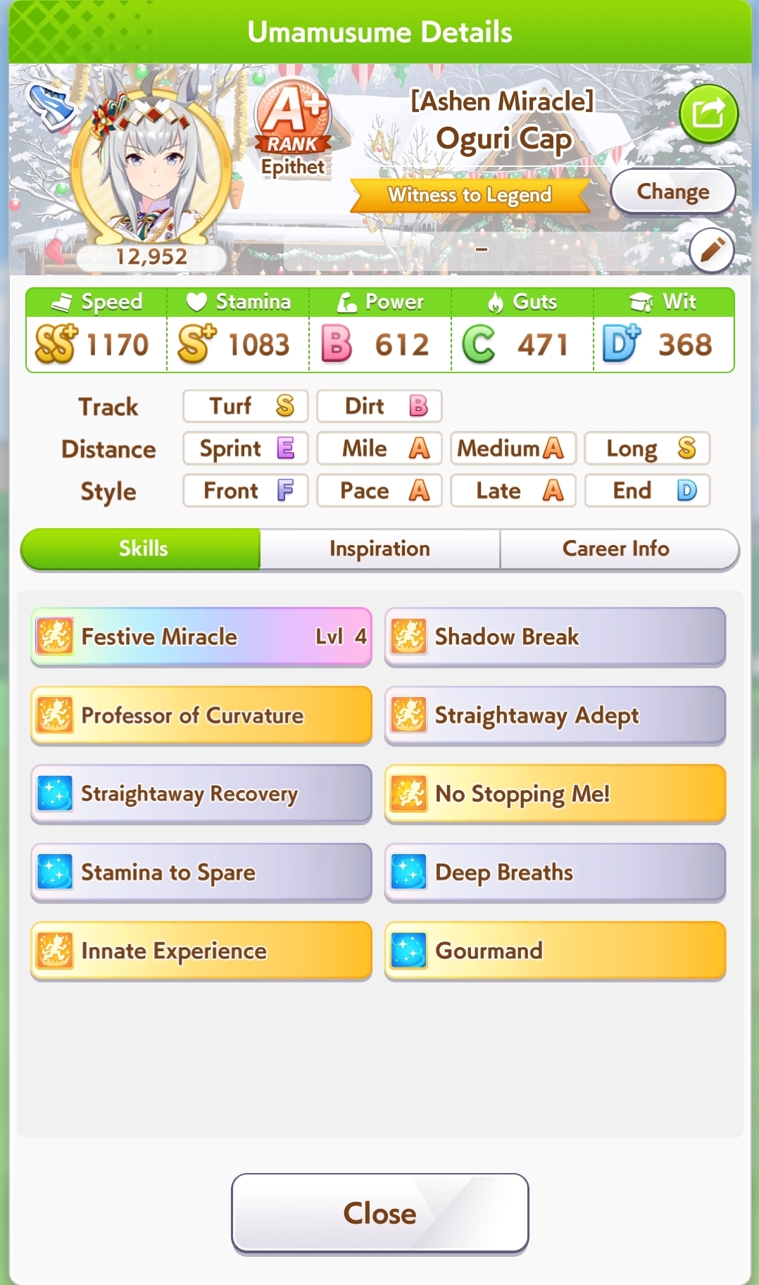 new anon here, I have 12k carrots, should i roll for xmas oguri or save for something else? I alrededor got Xmas Biwa