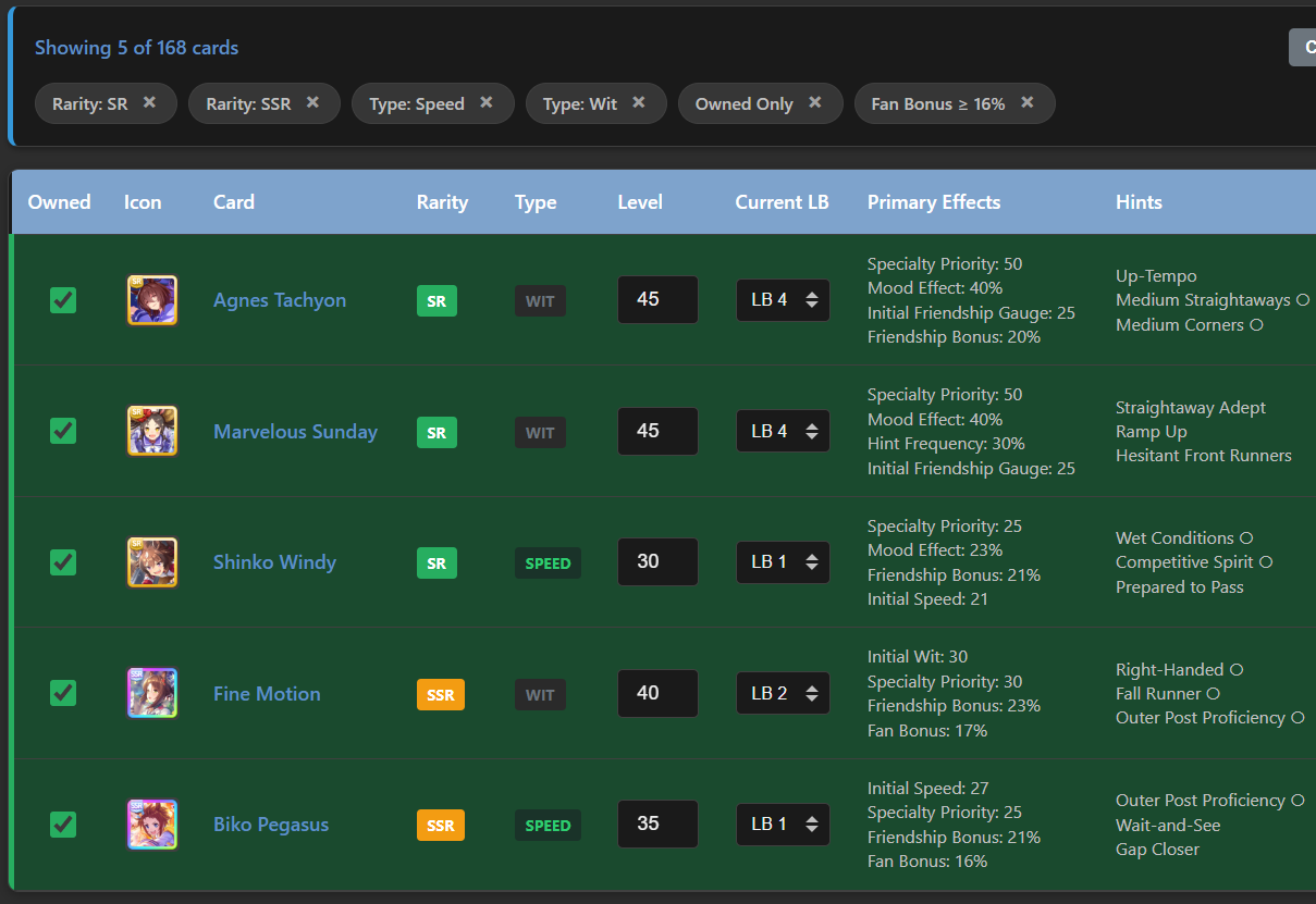 >>553511723biggest problem with 777 proc is that 2/3 of the ult is utterly useless. target speed won't do shit as you haven't reached full speed and recovery won't do anything either as late race recoveries don't adjust spurt timing.