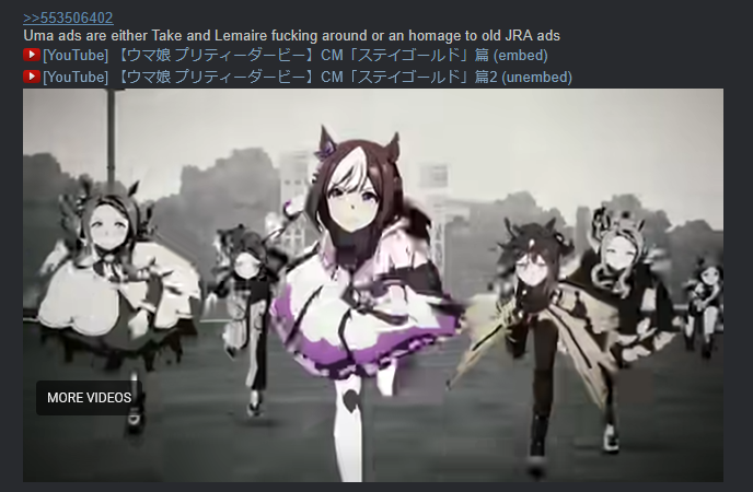 >>553486120>>553486484I do find it interesting that whenever there is an edit that references in-game Pokémon battles, it's almost always Gen 3 sound and visual effects that are used. Why is that?Totally Umamusume related, I swear.