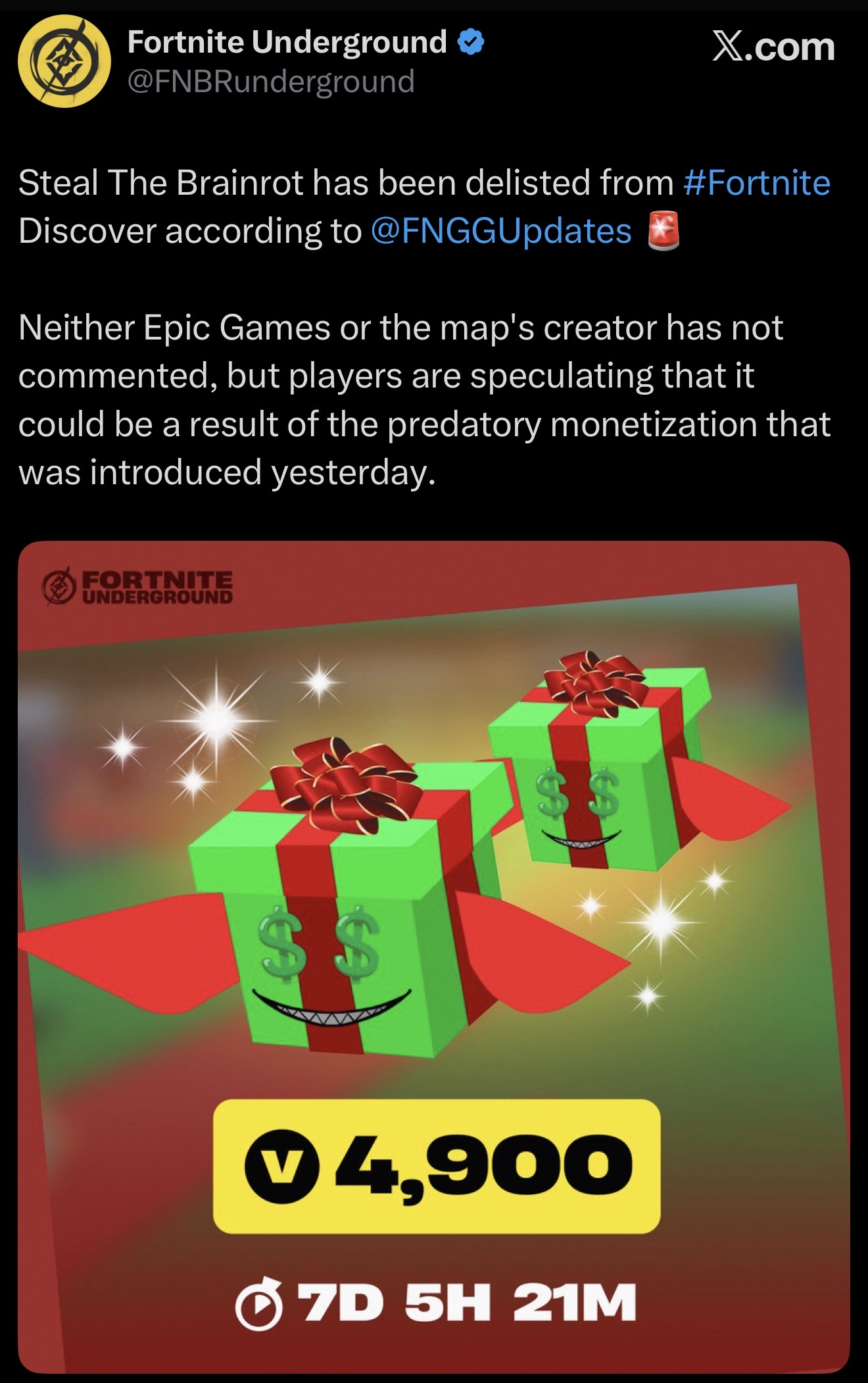 Surely Epic must have realized there would be a creator or 5 that would try to implement loot boxes or gambling right??Surely 1 person thought this could be happen
