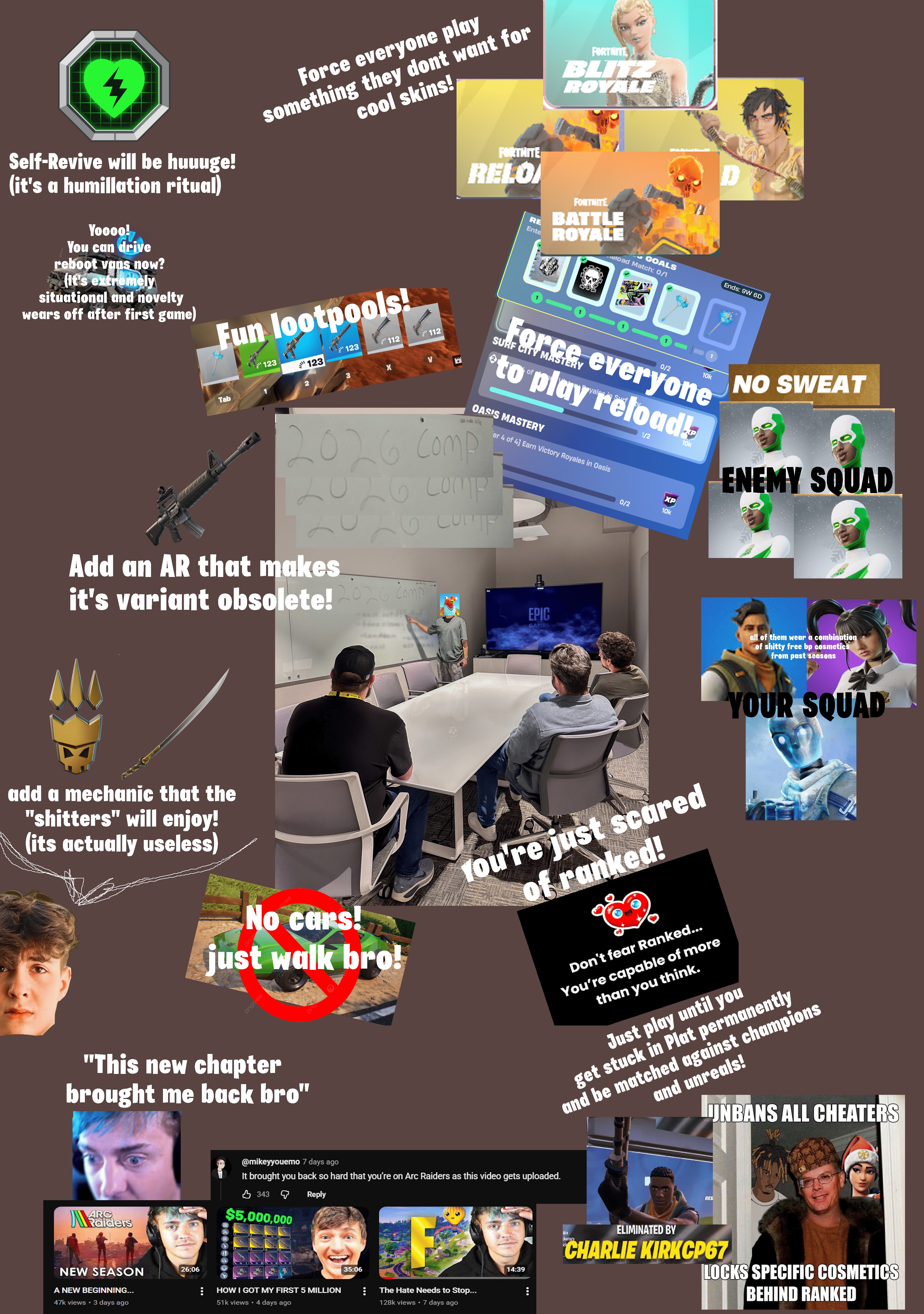 >shockwaves gone >50 dollar lootboxes >Epic trying to Fortnite into the League of Legends for BRs (trying to make ranked the main game mode)>Tim Sweeney is pro cheese pizza >Loot pool is AIDS Can you name the last time a chapter was so over so early