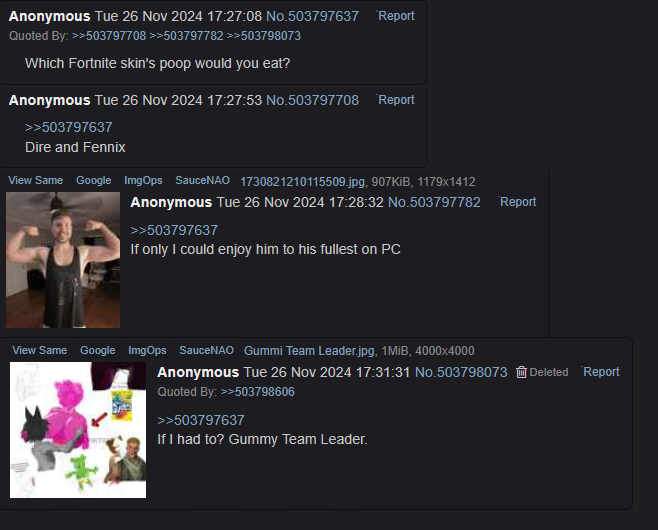 >>553499609if I was gay i could never be attracted to manly man. an androgynous man where he has feminine features like a woman I understand. But I don’t get them going crazy over Mr. Beast, Sypher or Nick like some anons go gay for.