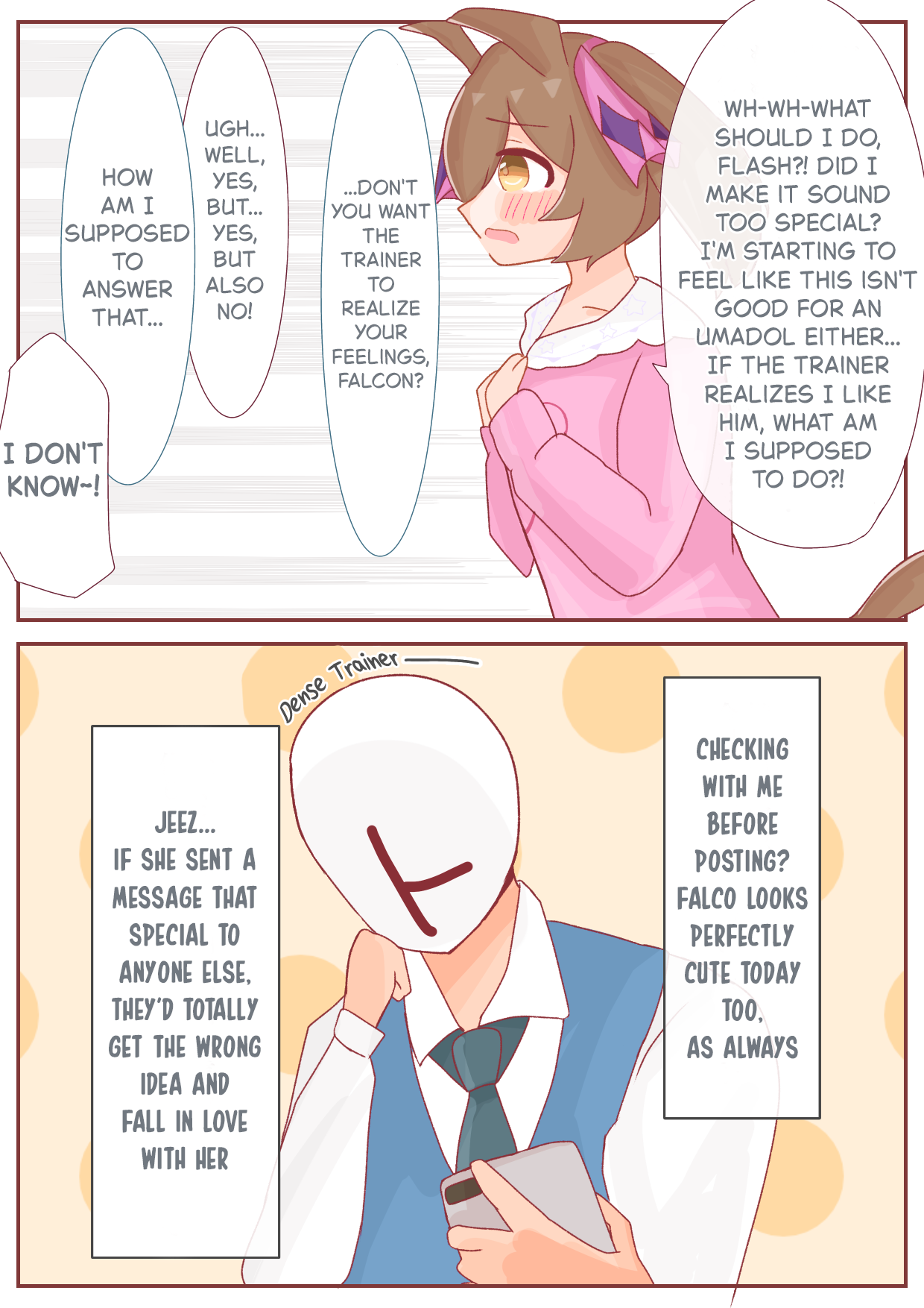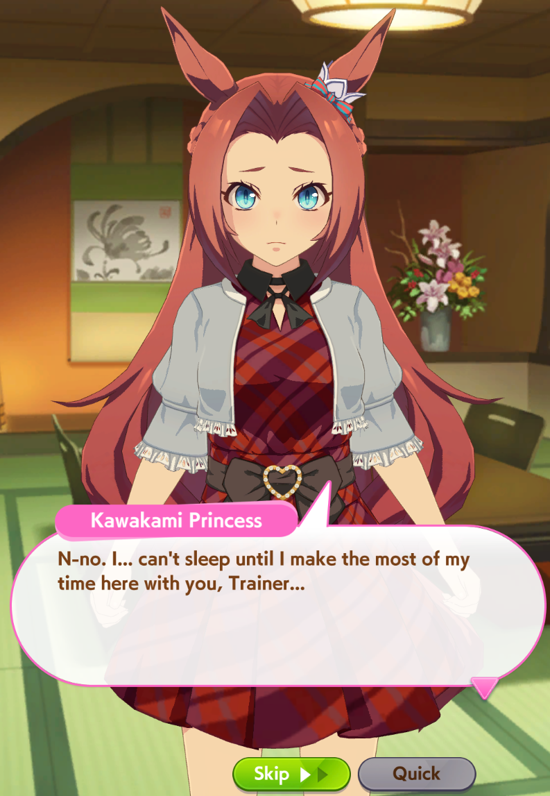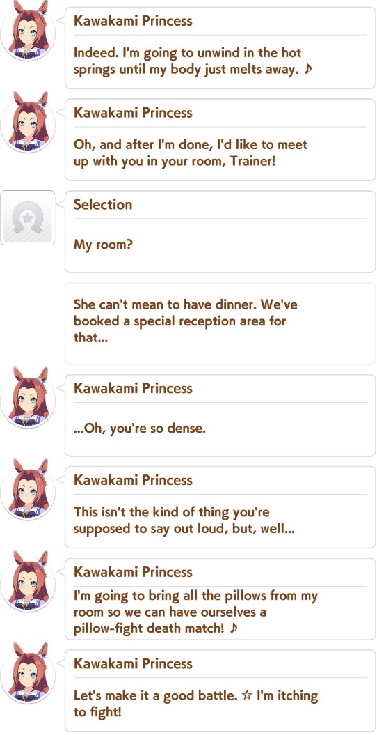 >>553513049Toward the end of her career, and especially during the trip to the hot springs, she drops so many lines that can be taken as double entendres that I honestly don’t know what to think, it reminded me of how women sometimes behave when they hint at things in ways that are really hard to pick up. The only thing I understood is that both love racing