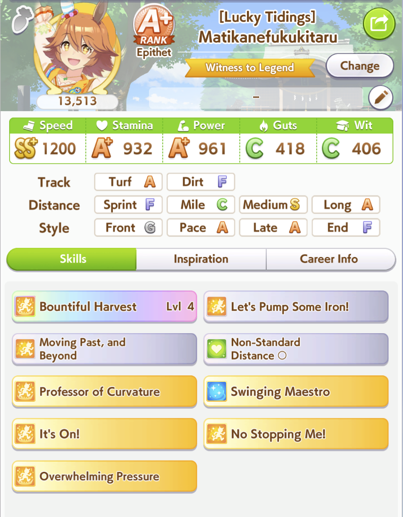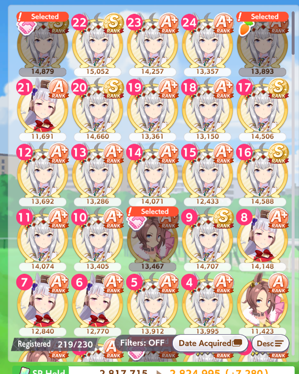 >>553528235I've been sitting around 600k for the past few weeks. I trained some new runners for next week since some of my previous ones had max bond level, but expect them to be sidegrades. If you have MLB Kitasan you should be able to retain every week.