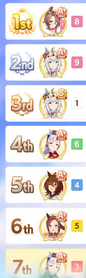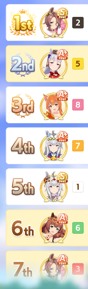 I didn't realize I never got below 5th with Kawakami Princess until now