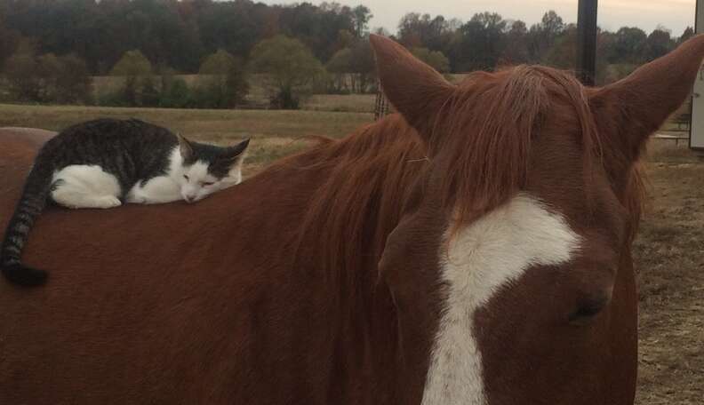 >>553529515cats like sitting on soft thingsthere aren't a lot of things as soft as a horse's back in a barn or pasture